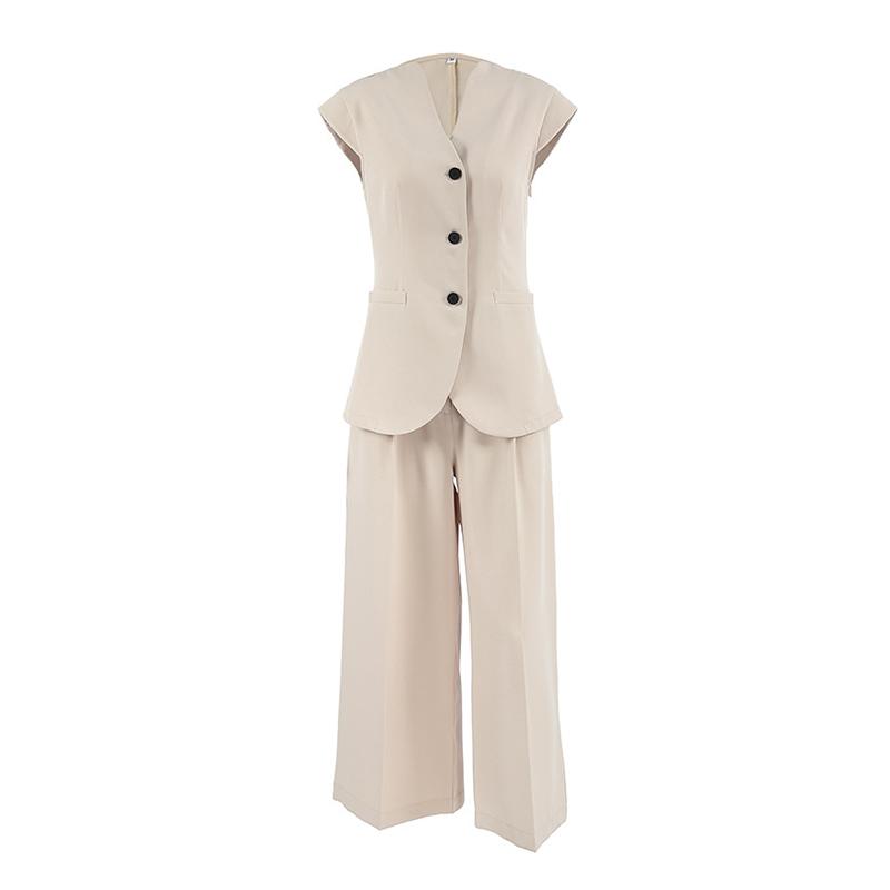 Женский повседневный жилет, брюки, костюм, весенний однобортный жилет без рукавов с V-образным вырезом, широкие брюки с высокой талией, комплекты для поездок на работу
