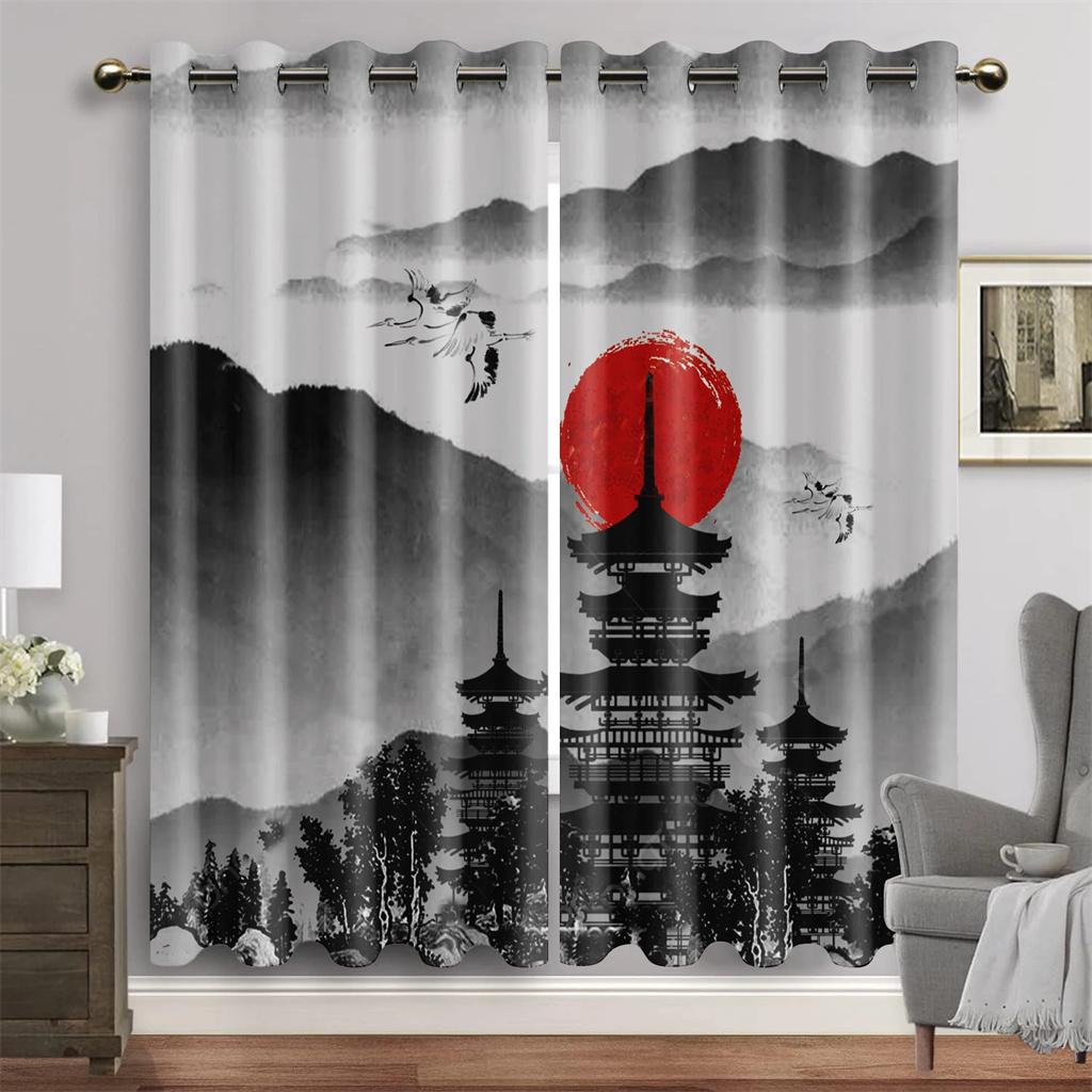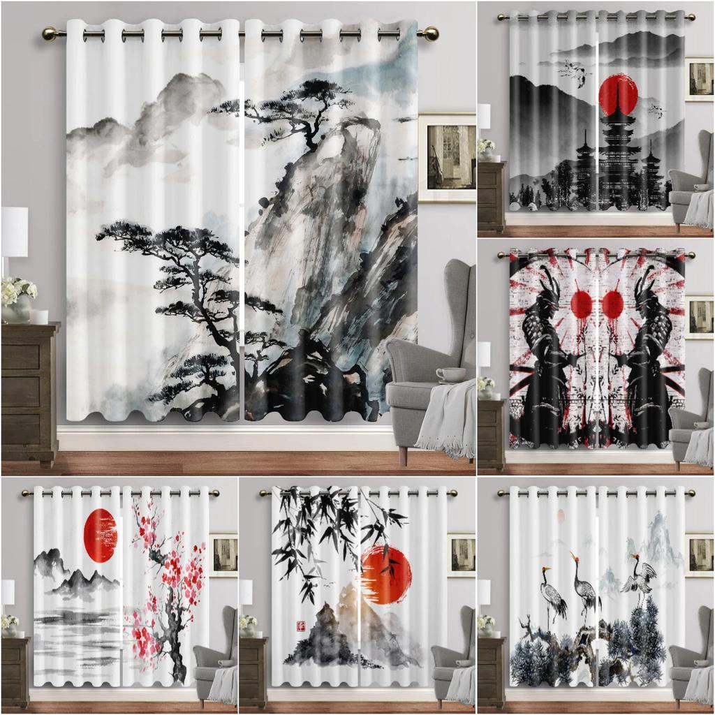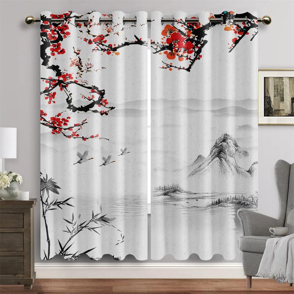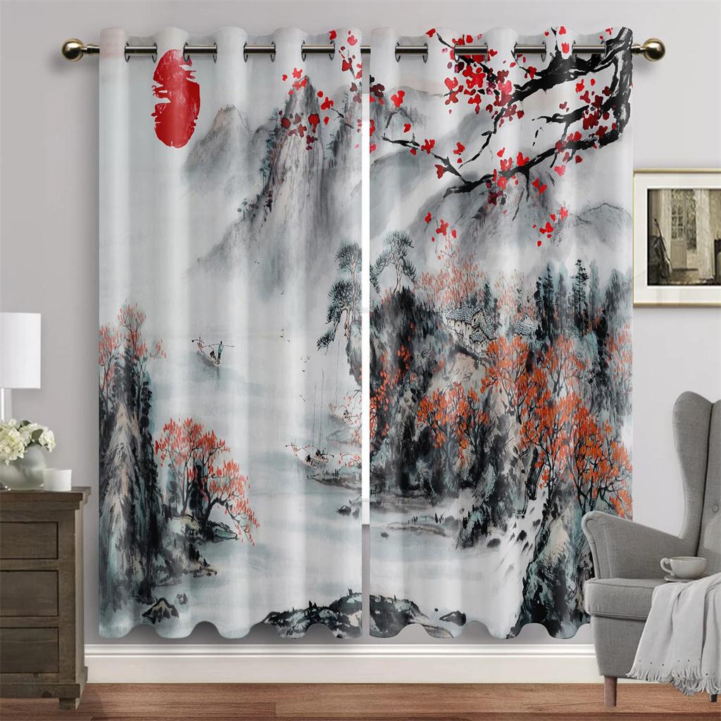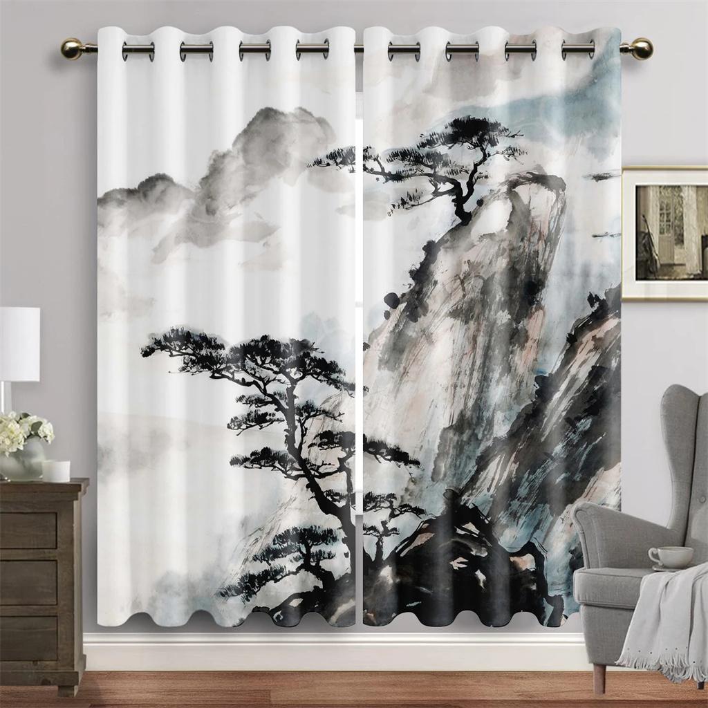 Китайские традиционные чернила краска пейзаж оконные шторы жалюзи для гостиной детской спальни ванной кухни двери домашнего декора2 шт.