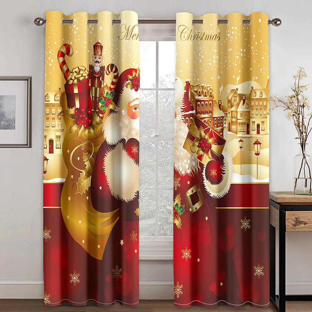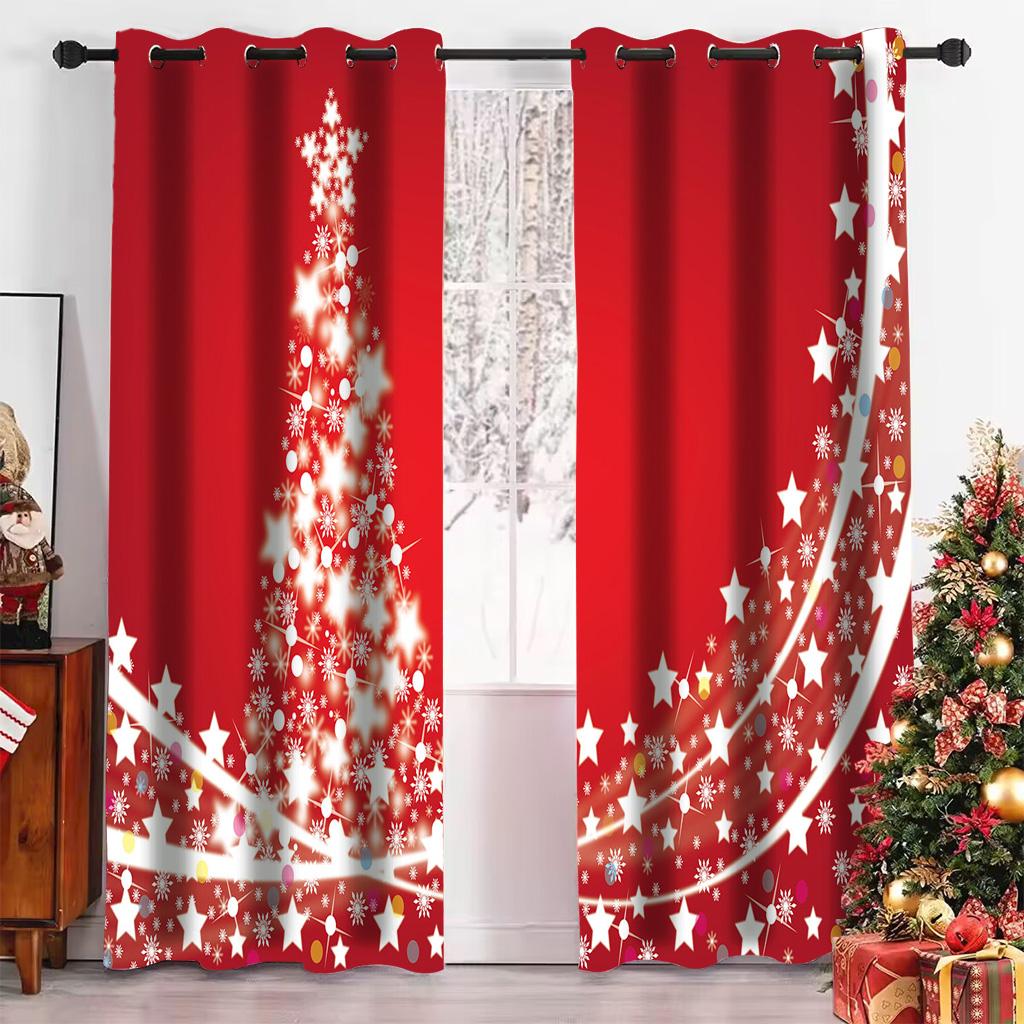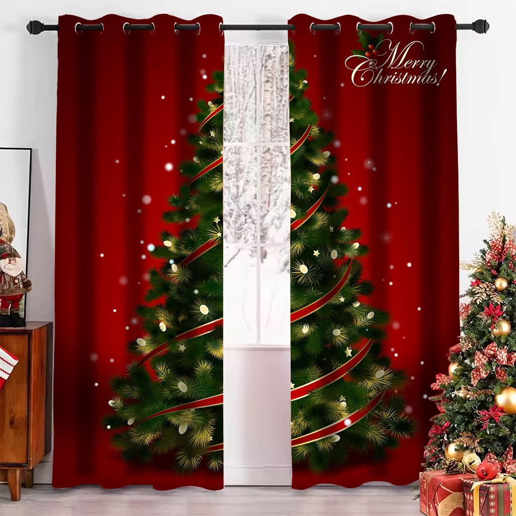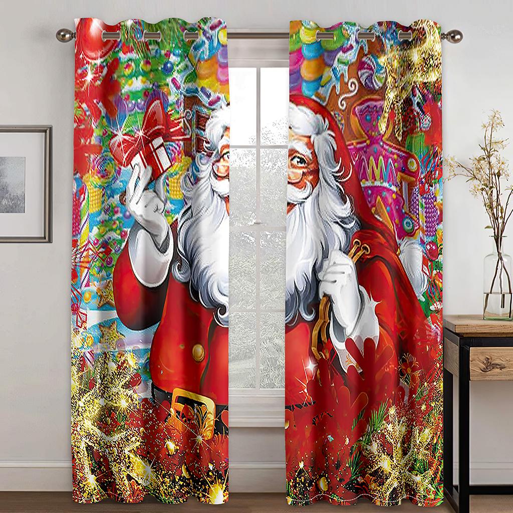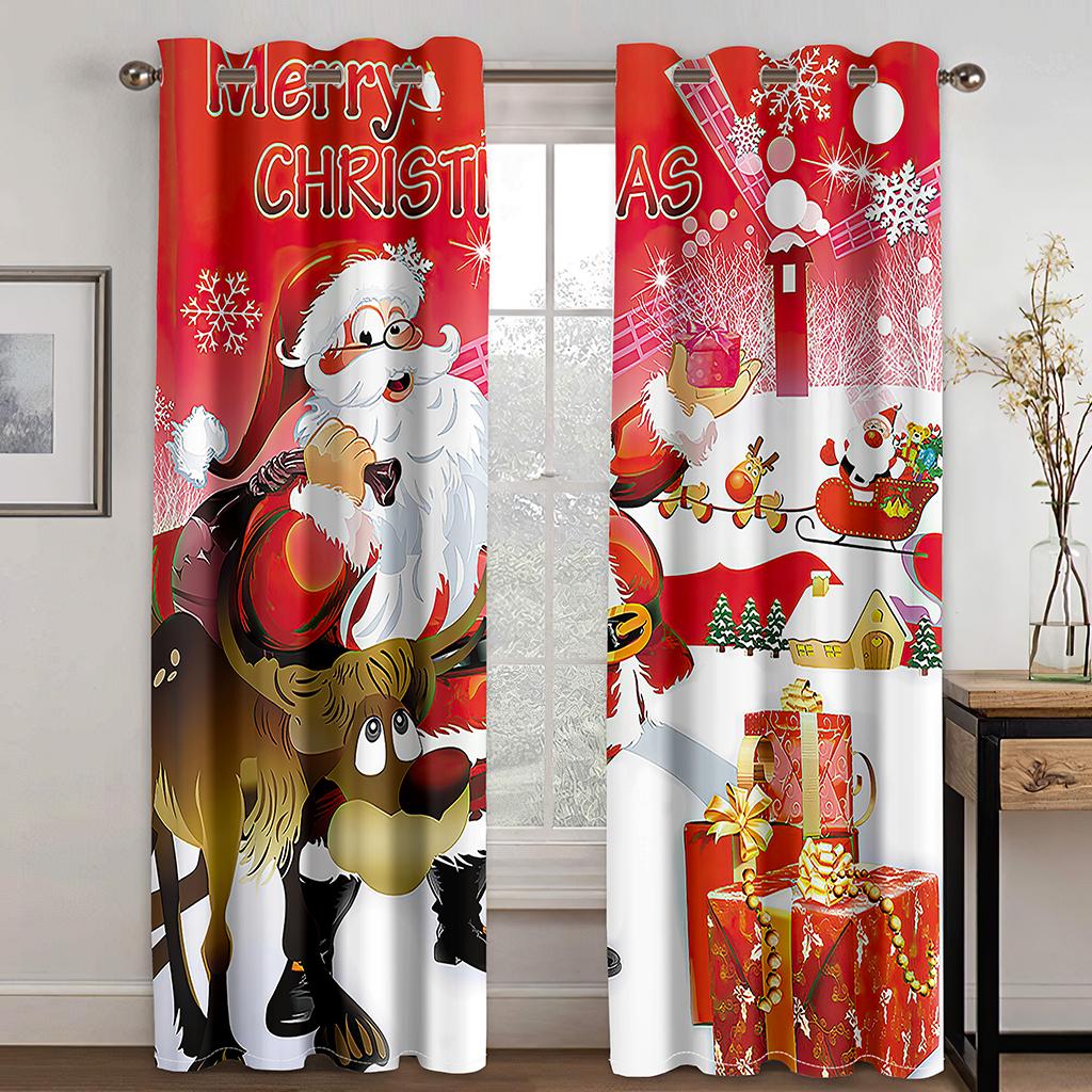 Рождественская елка мультфильм Санта-Клаус красные шторы на окна для детей спальня гостиная ванная комната кухня дверь холл домашний декор