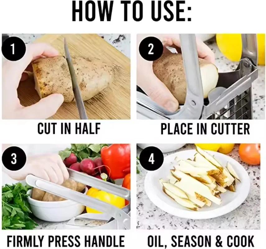 Из нержавеющей стали 2-лезвийный резак для картофеля фри, слайсер, измельчитель, машина для нарезки чипсов, инструмент для нарезки картофеля фри