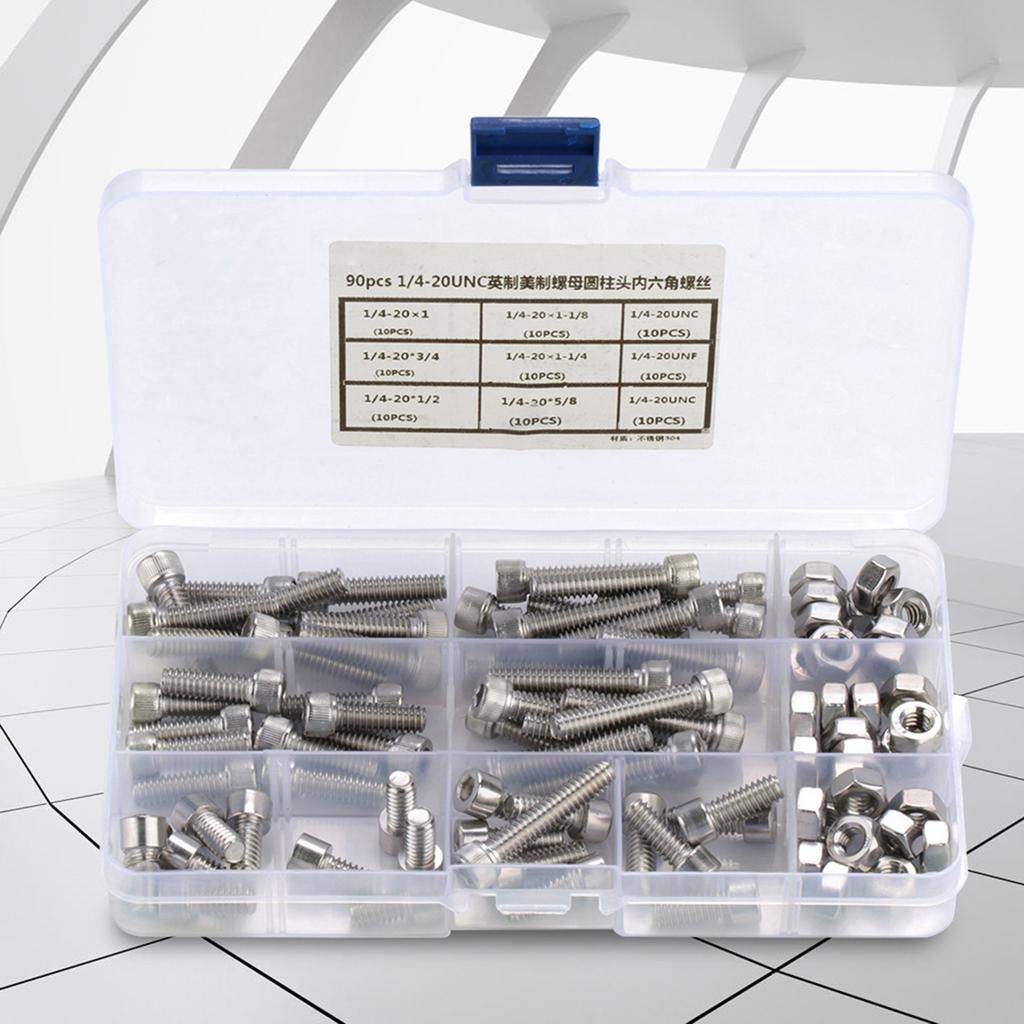 90 шт. 1420UNC нержавеющая сталь шестигранный болт с головкой под торцевой ключ набор шестигранных винтов