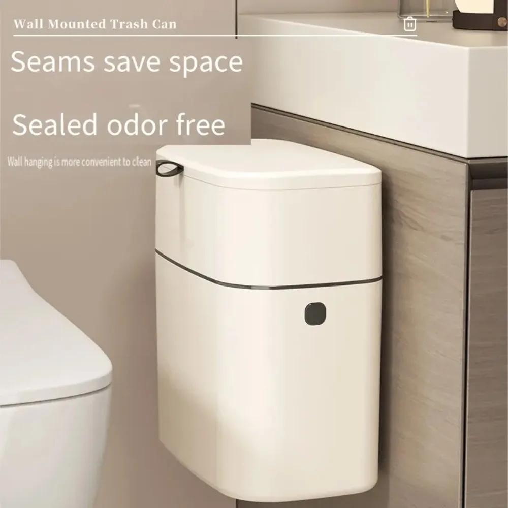 Настенный мусорный бак прямоугольный узкий дизайн с крышкой прочный несущий два способа настенного монтажа 9 л