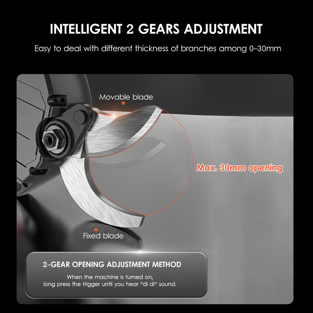 Мощный бесщеточный двигатель. Профессиональные беспроводные электрические секаторы напряжением 21 В оснащены бесщеточным двигателем, который обеспечивает на 50 процентов больше времени работы, повышает эффективность обрезки на 30 процентов, а также срок службы в 3–5 раз больше, чем у обычного щеточного двигателя, что значительно сокращает расходы на техническое обслуживание из-за повреждения двигателя.