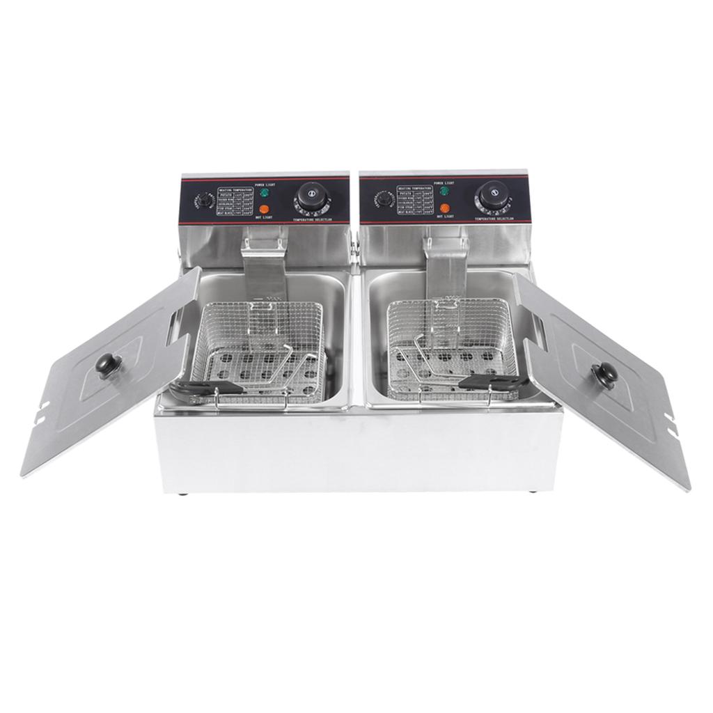 Коммерческая профессиональная электрическая фритюрница объемом 12 л из нержавеющей стали с двойным глубоким резервуаром