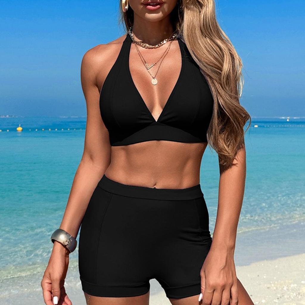 Женский сексуальный купальник из двух частей, бикини, купальник с бретельками сзади и стальной скобой для груди