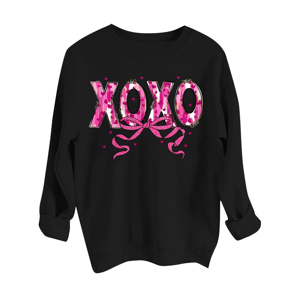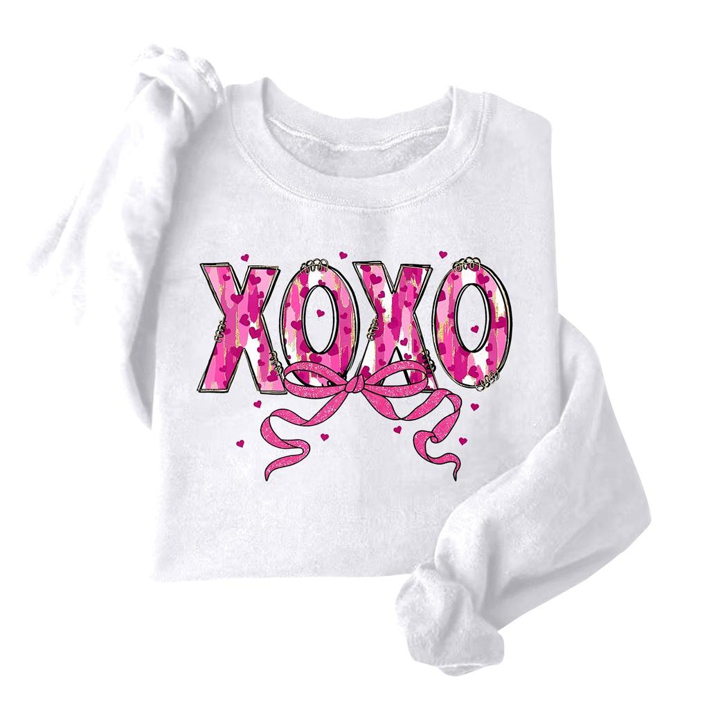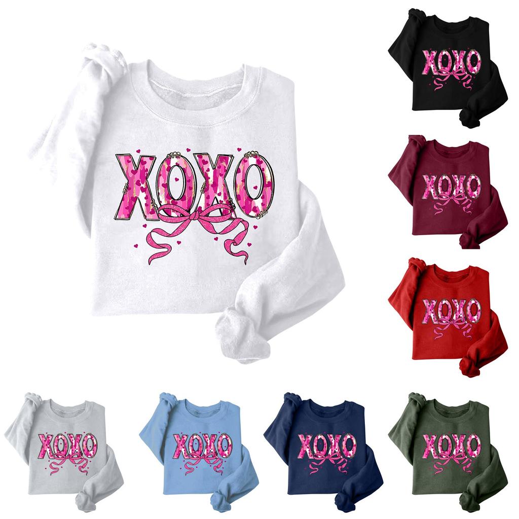 Женская модная свободная толстовка с длинным рукавом и круглым вырезом с принтом ко Дню святого Валентина