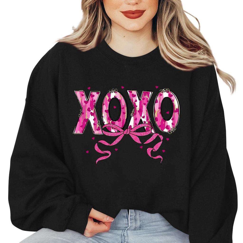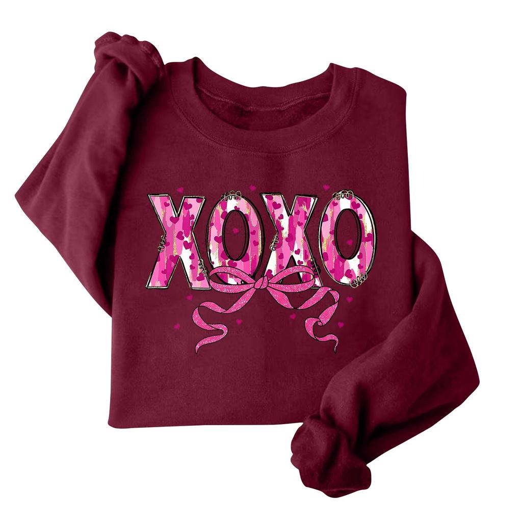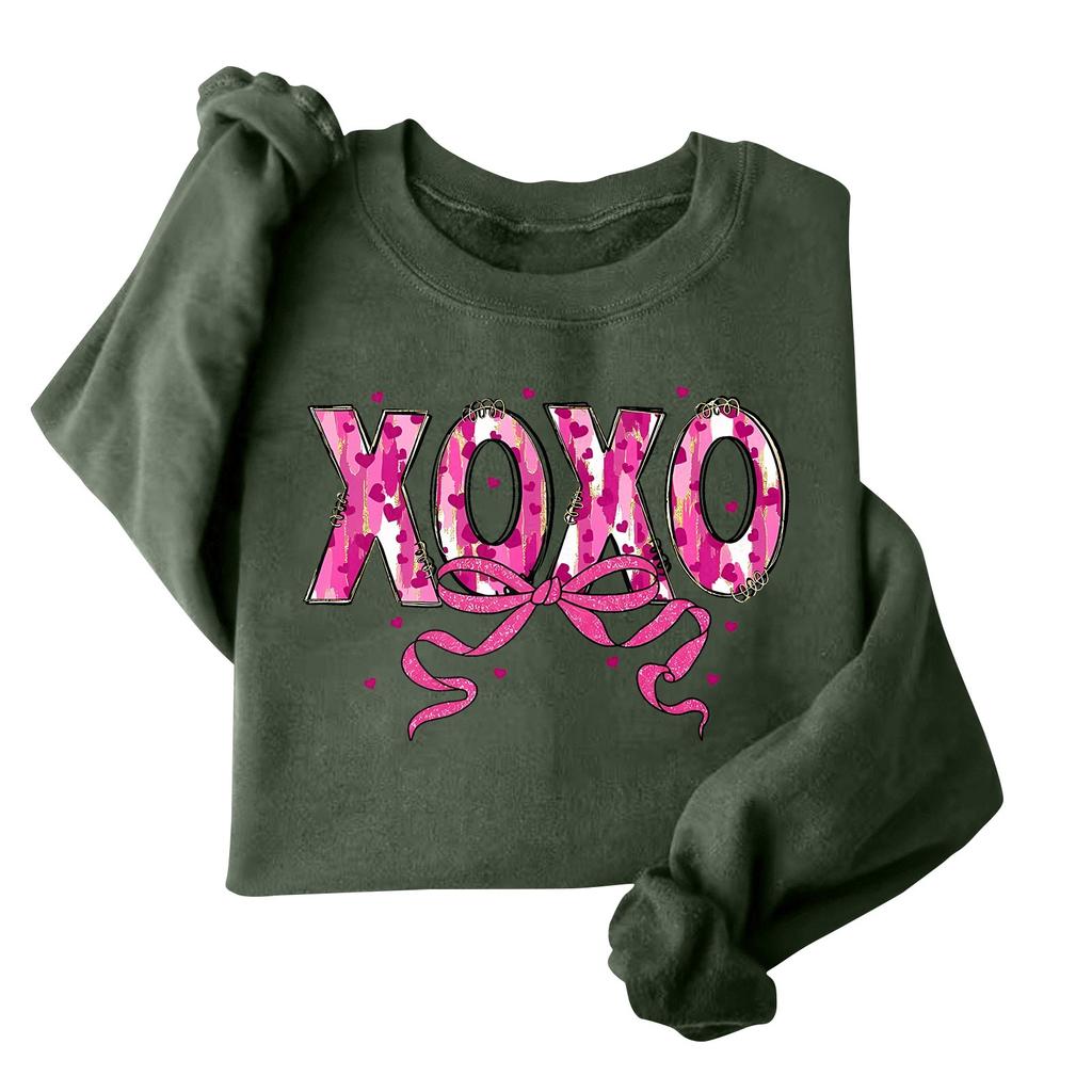 Женская модная свободная толстовка с длинным рукавом и круглым вырезом с принтом ко Дню святого Валентина