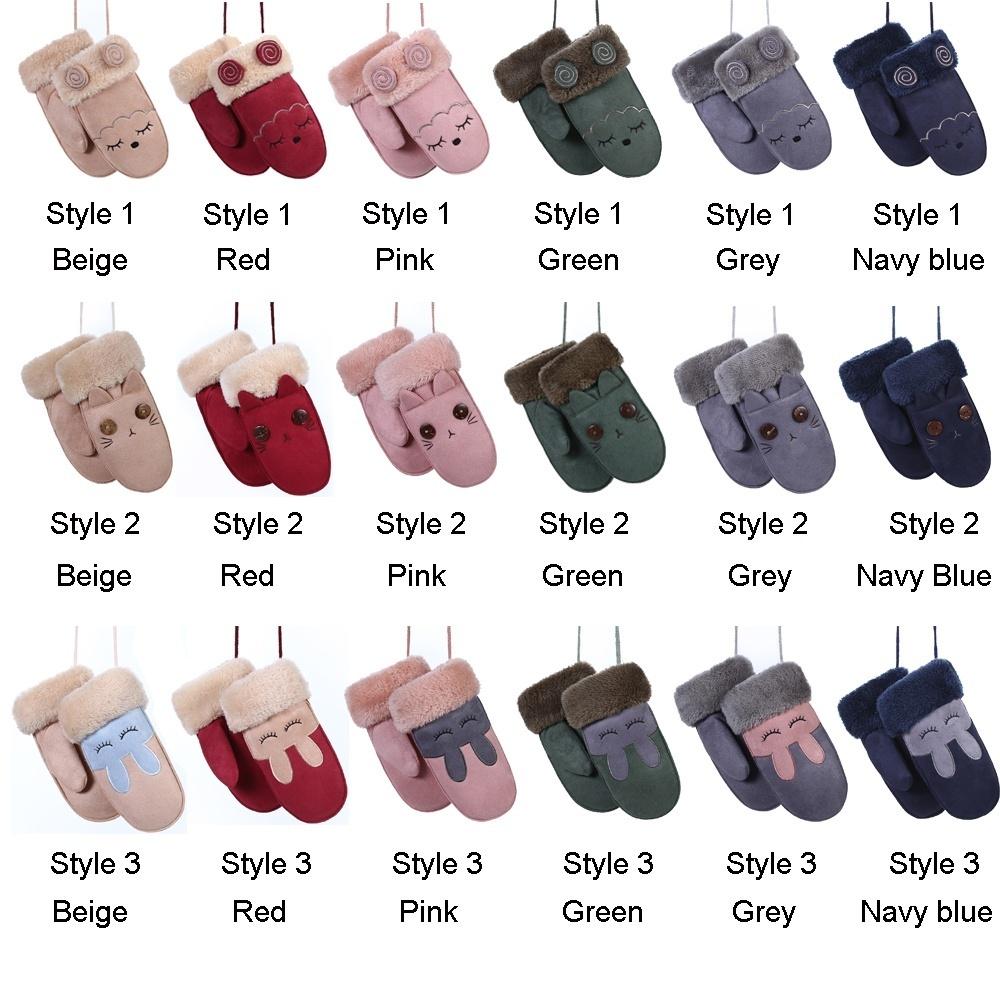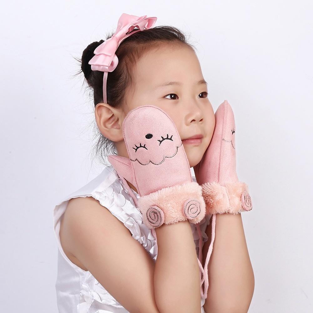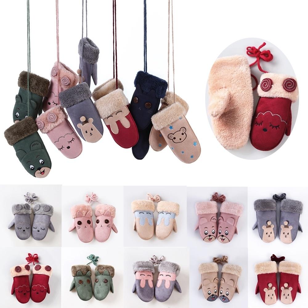 1 пара варежек унисекс, утепленные зимние теплые детские перчатки с полным пальцем, искусственная замша, мультяшные животные