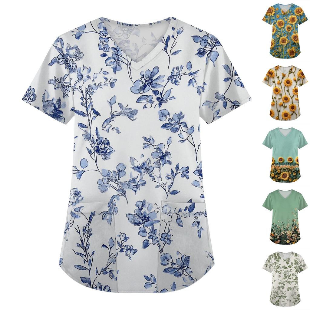 Женская мода с коротким рукавом и V-образным вырезом с карманами и цветочным принтом Топы Одежда — купить товар онлайн с бесплатной доставкой по всему миру!