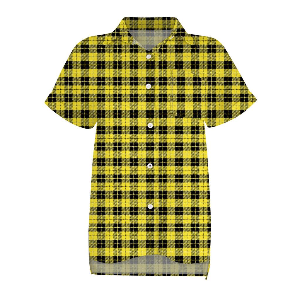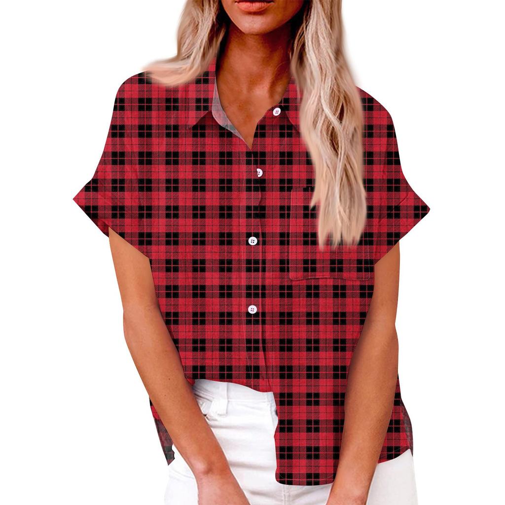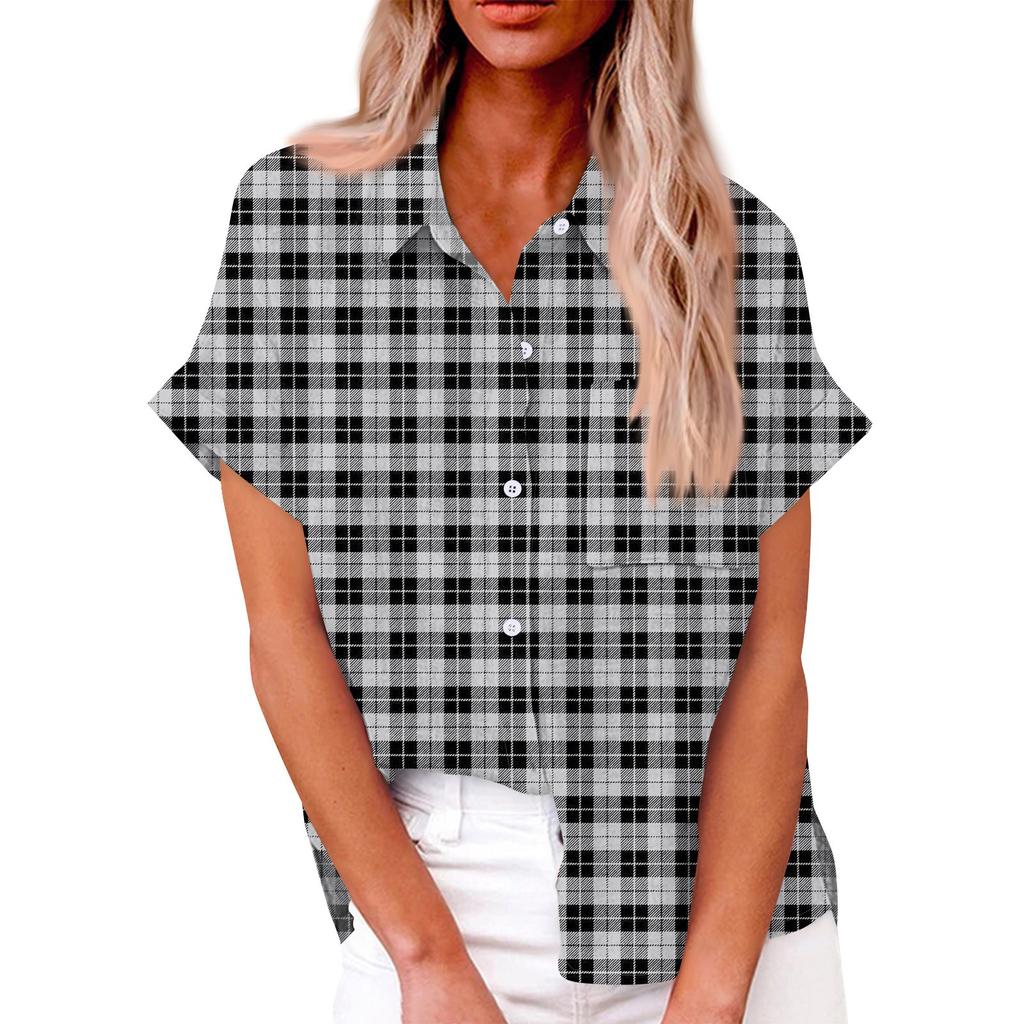 Женская свободная повседневная рубашка с короткими рукавами и отворотом с цифровым принтом и карманом