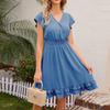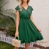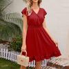 Женское повседневное однотонное платье с застежкой на талию и V-образным вырезом