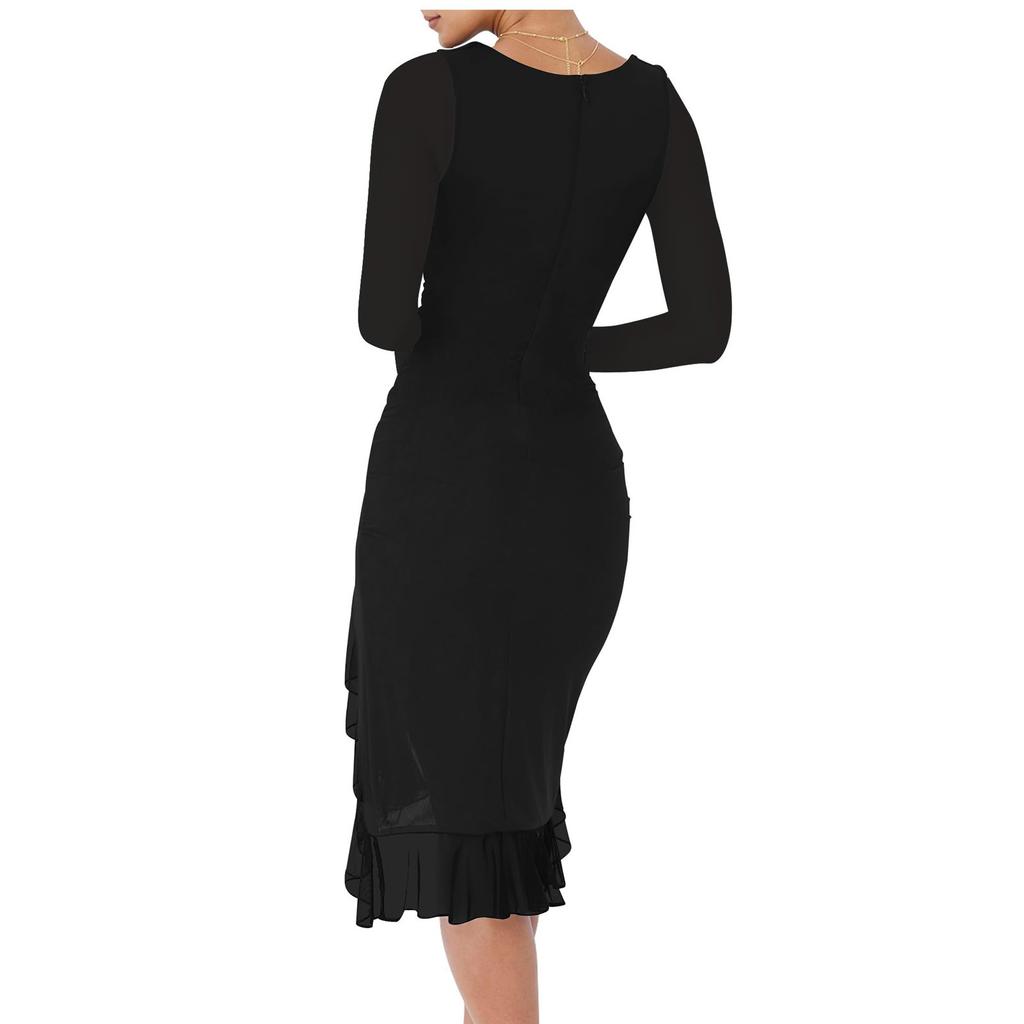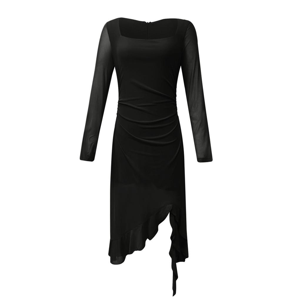 Женское модное сексуальное плиссированное боди-платье, элегантное коктейльное платье с длинным рукавом и квадратным вырезом