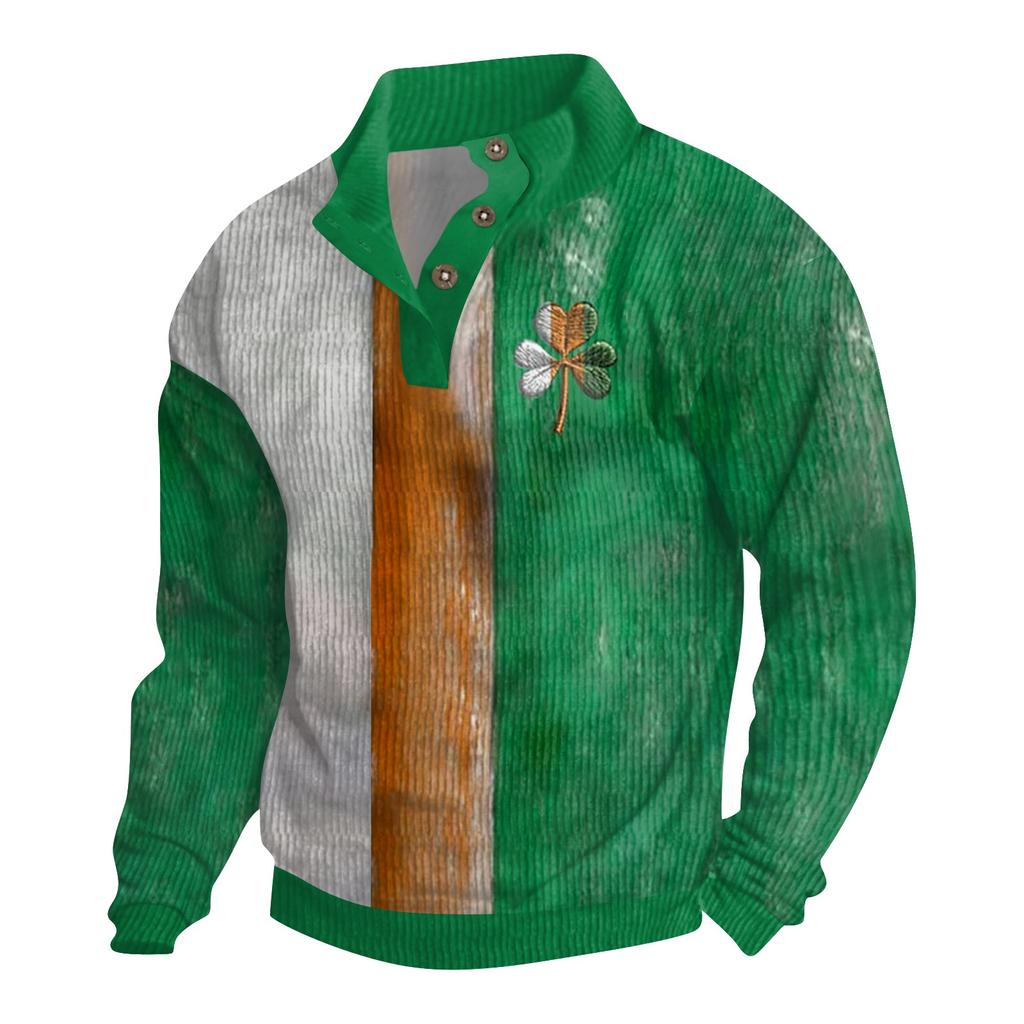 Улица. Patrick Мужская хлопковая рубашка-пуловер с длинным рукавом для активного отдыха, винтажная вельветовая рубашка с воротником-стойкой и пуговицами, повседневная толстовка с принтом