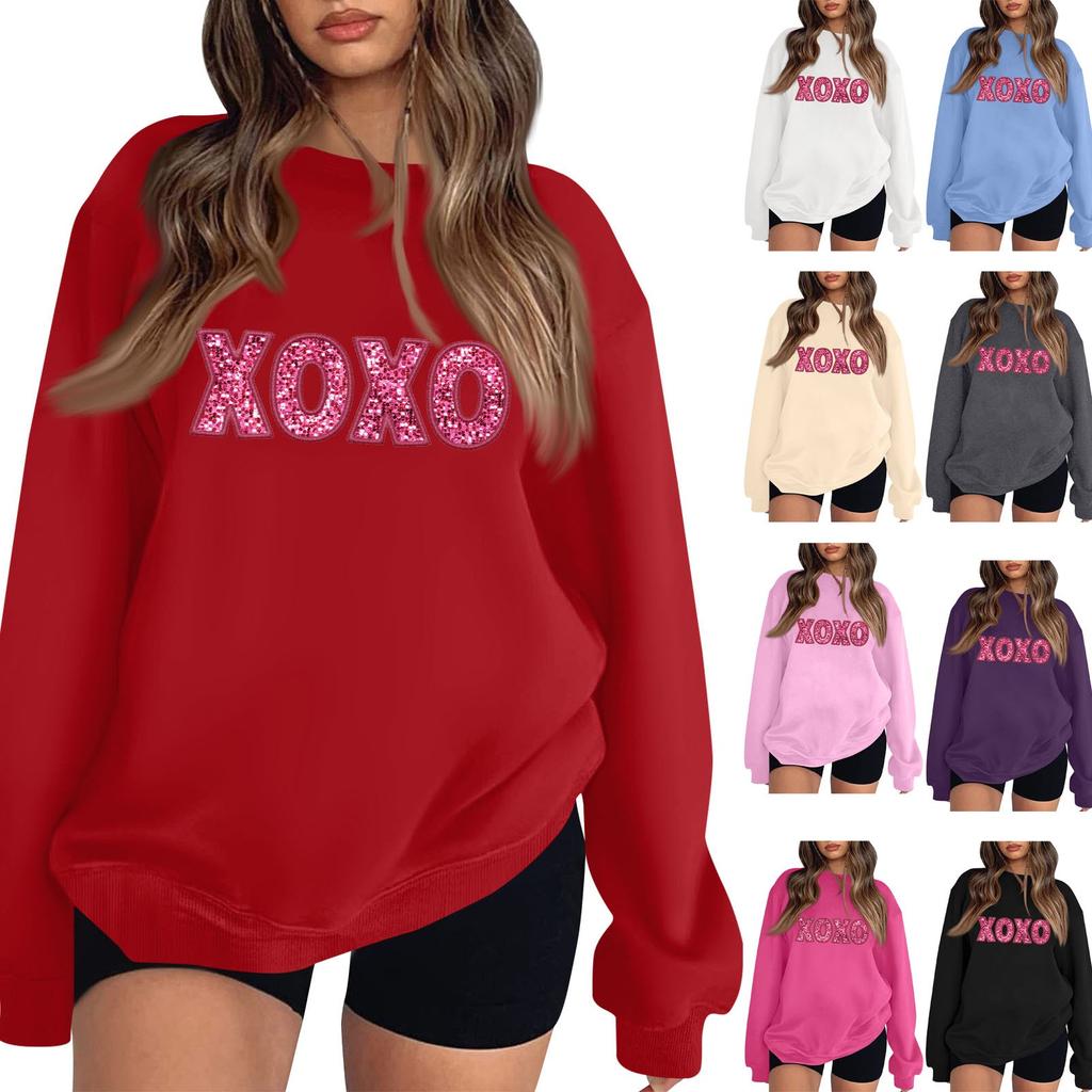Женская модная свободная толстовка с длинным рукавом и круглым вырезом с принтом ко Дню святого Валентина — купить товар онлайн с бесплатной доставкой по всему миру!
