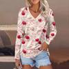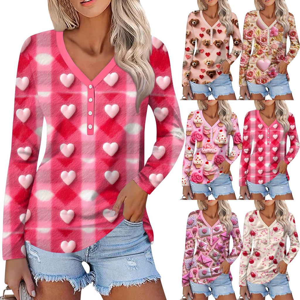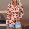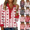 Женский модный повседневный топ с длинным рукавом и V-образным вырезом на пуговицах ко Дню святого Валентина с принтом в виде сердца