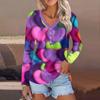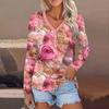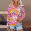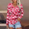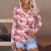 Женский модный повседневный топ с длинным рукавом и V-образным вырезом на пуговицах ко Дню святого Валентина с принтом в виде сердца
