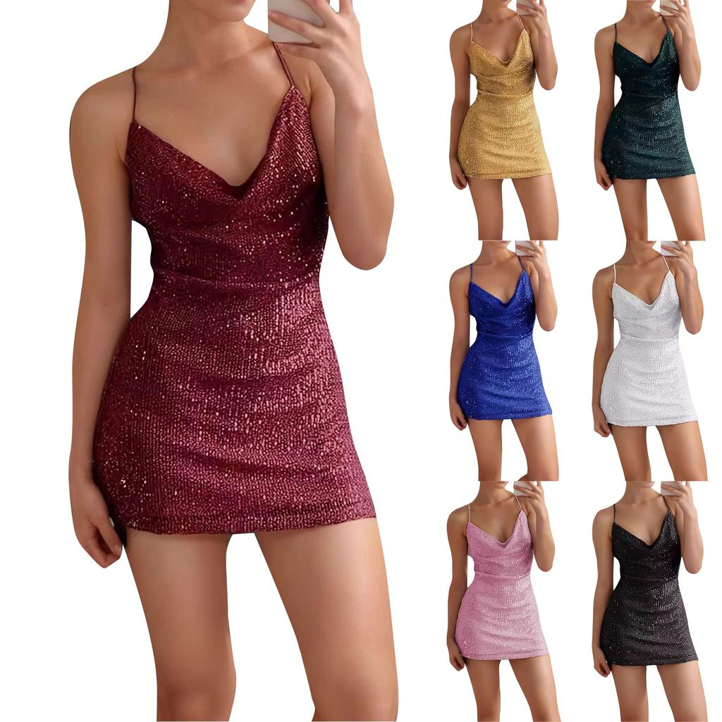 Женское модное сексуальное платье с бисером и пайетками на бедрах