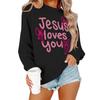 Женская повседневная модная блузка с длинным рукавом и круглым вырезом с принтом и пуловером