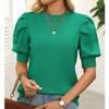 Женский повседневный и модный однотонный свитер с круглым вырезом и короткими рукавами