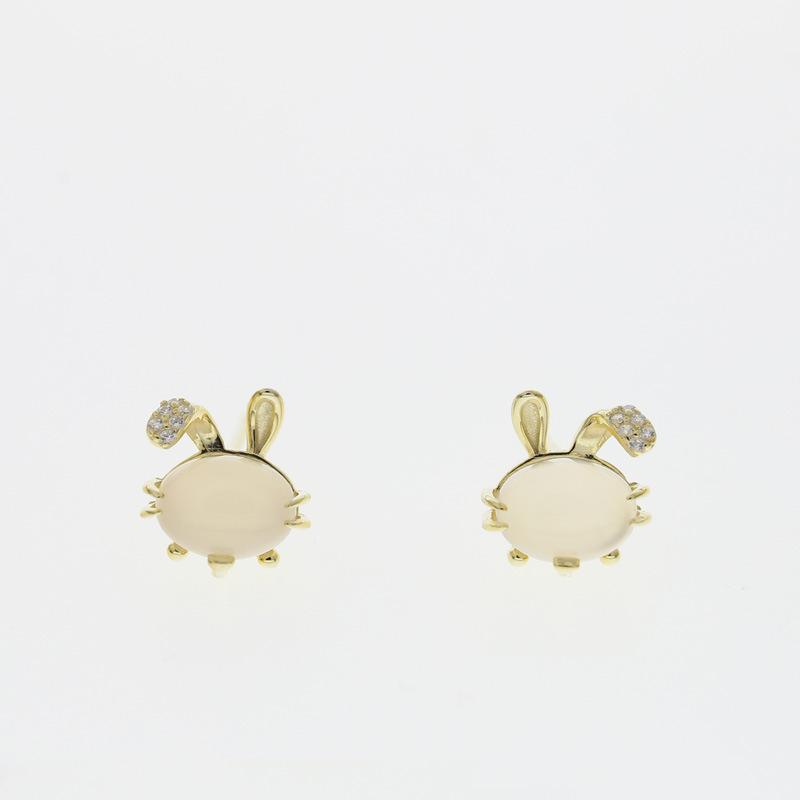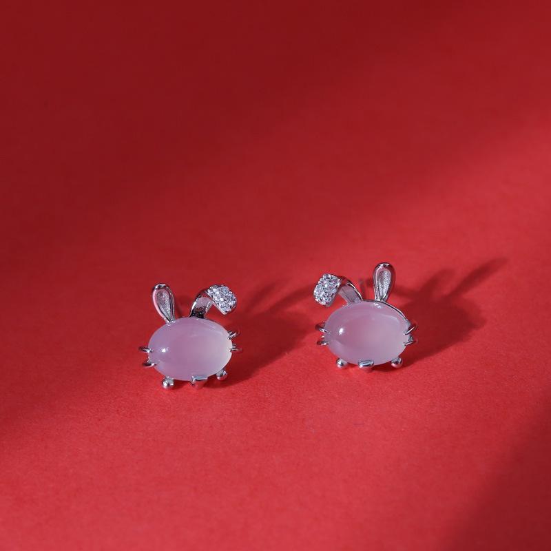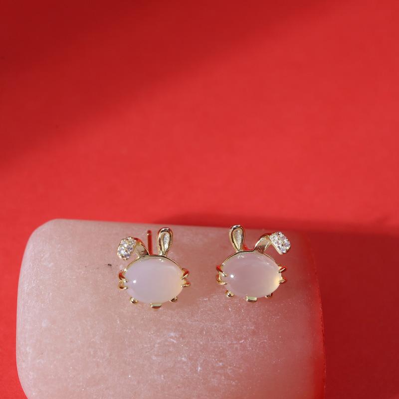 Серьги с игривым зодиакальным кроликом из белого халцедона для женщин, новые модные серьги в стиле национального тренда