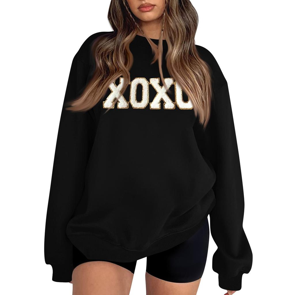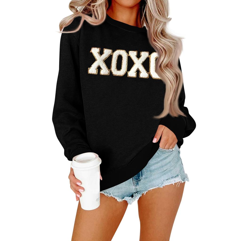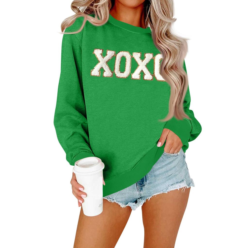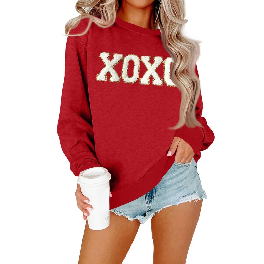Женская модная повседневная толстовка с длинными рукавами и круглым вырезом с принтом ко Дню святого Валентина