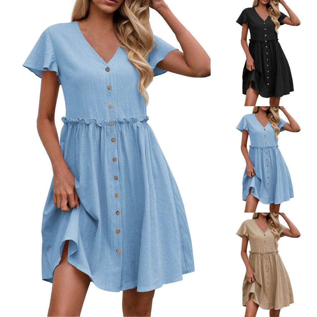Женское платье, повседневное, летнее, однотонное, с V-образным вырезом и короткими рукавами — купить товар онлайн с бесплатной доставкой до всему миру!