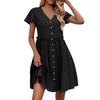Женское платье, повседневное, летнее, однотонное, с V-образным вырезом и короткими рукавами