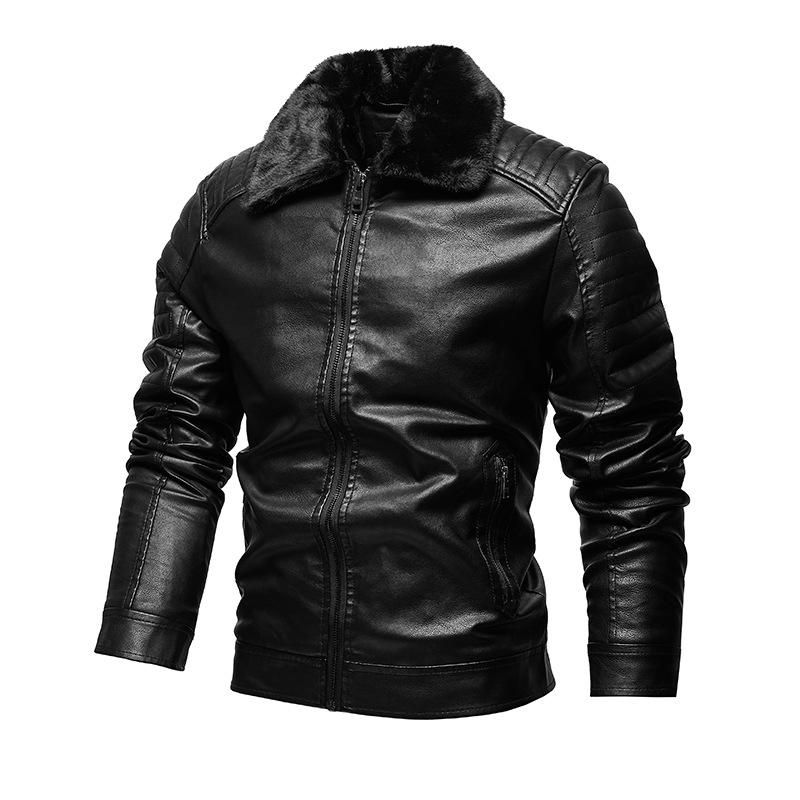 Кожаная куртка для мужчин, кожаная куртка с лацканами и меховым воротником, мужское пальто из ПУ, мотоциклетный костюм и плюшевая кожаная куртка
