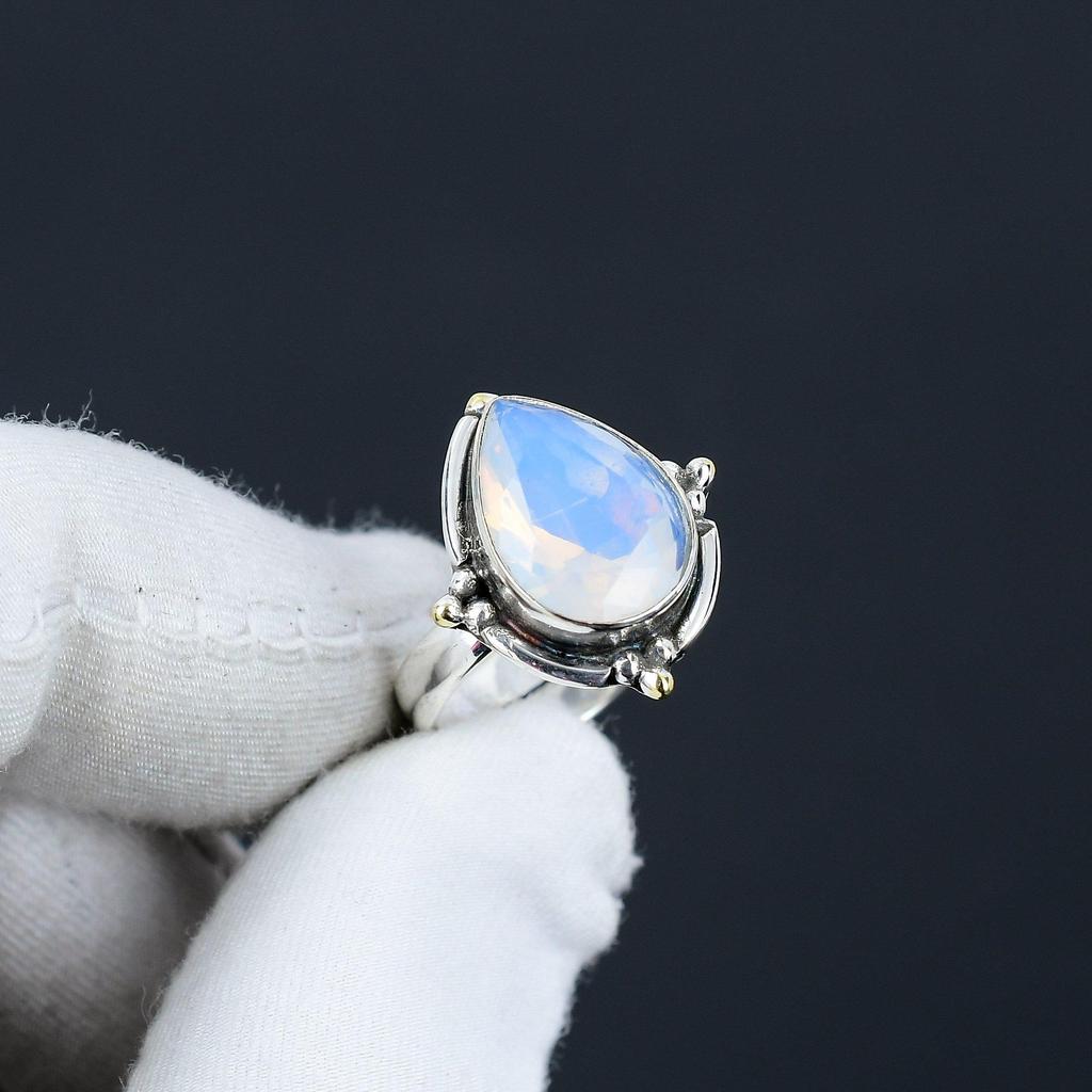 Кольцо Milky Opal, регулируемое, из стерлингового серебра 925 пробы — подходит для размеров США от 6 до 10 — украшения ручной работы в стиле бохо для женщин и мужчин, подарки на День святого Валентина