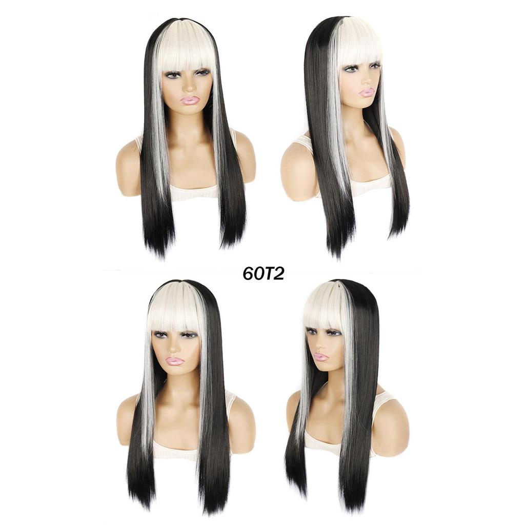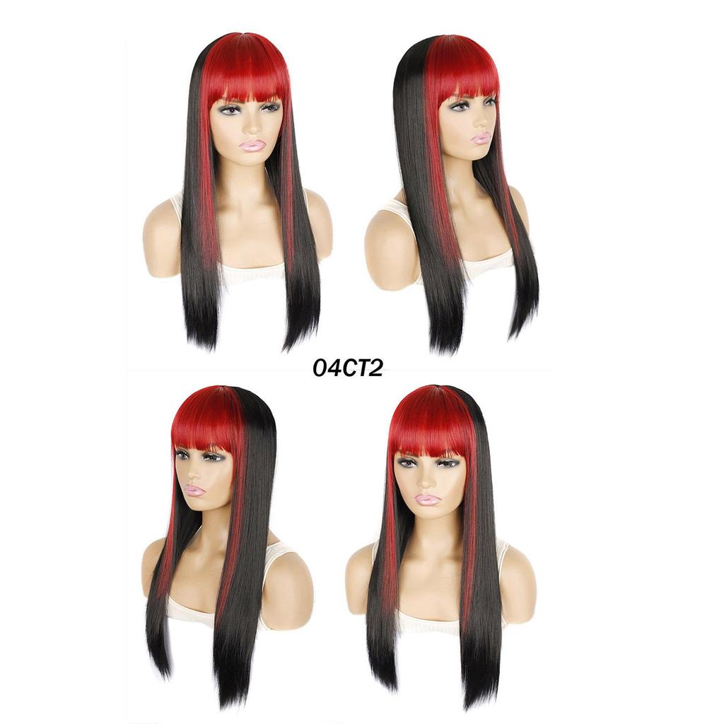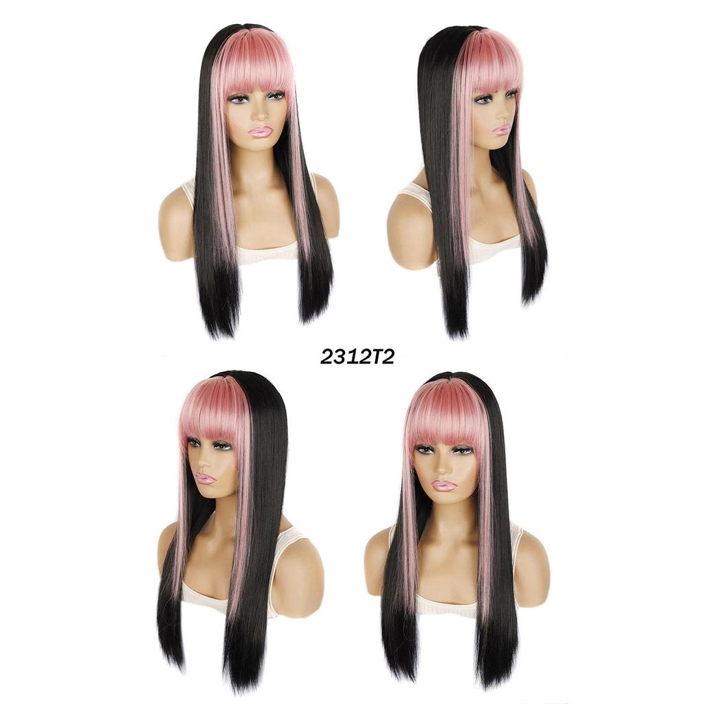 Длинный парик с челкой, прямые волосы, черный, розовый, синий, балаяж, мелированный цвет, современные парики для молодых девушек