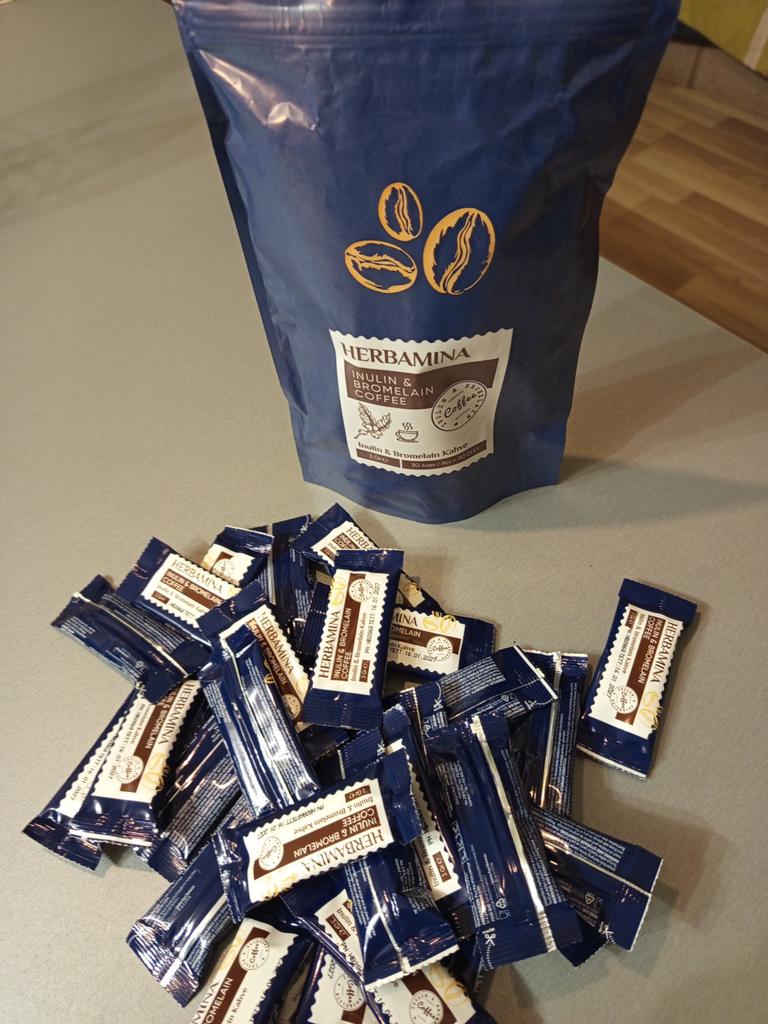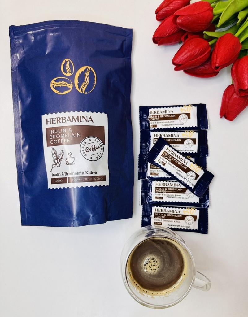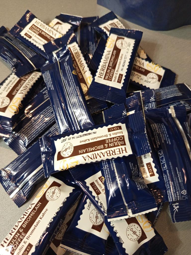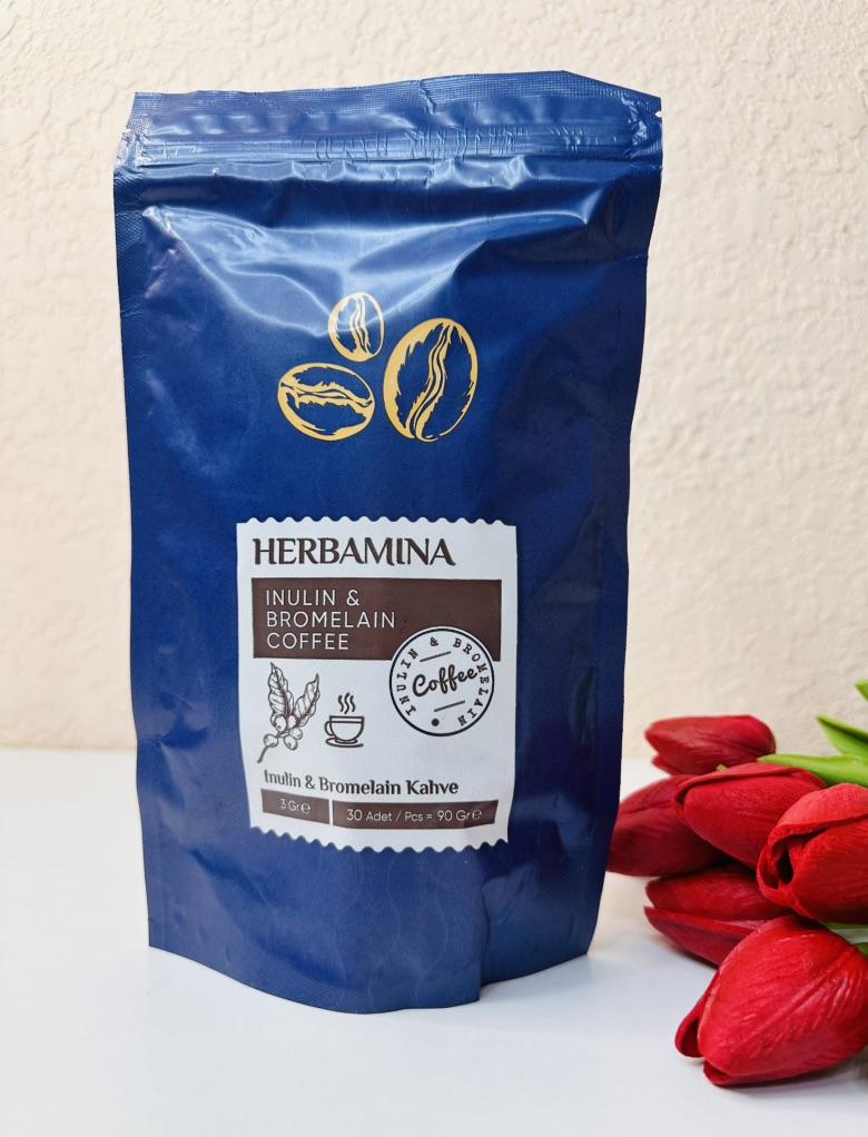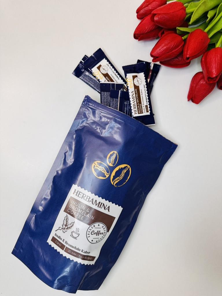 Herbamina Inulin & Bromelain кофе из Турции❤️🇹🇷 Описание продукта Herbamina Inulin & Bromelain Coffee — это растворимый кофе, обогащенный инулином и бромелаином. Упаковка содержит 30 порций по 3 г каждая, общий вес — 90 г. Основные компоненты и их польза • Инулин — натуральный пребиотик, который улучшает пищеварение, поддерживает здоровье кишечника и способствует лучшему усвоению питательных веществ. • Бромелаин — фермент, содержащийся в ананасе, известен своими противовоспалительными свойствами, способствует пищеварению и может помогать при похудении. • Кофе — естественный источник кофеина, который бодрит и улучшает концентрацию. Преимущества ✔ Улучшает пищеварение благодаря инулину и бромелаину. ✔ Поддерживает работу кишечника. ✔ Может способствовать метаболизму и снижению веса. ✔ Освежающий кофейный вкус с дополнительной пользой для здоровья. Как употреблять? Развести один пакетик (3 г) в горячей воде (около 150 мл) и размешать. Можно употреблять утром или в течение дня. Вывод Herbamina Inulin & Bromelain Coffee — это интересный вариант для тех, кто хочет сочетать удовольствие от кофе с пользой для здоровья, особенно для пищеварительной системы. Подходит для людей, следящих за своим питанием и метаболизмом.