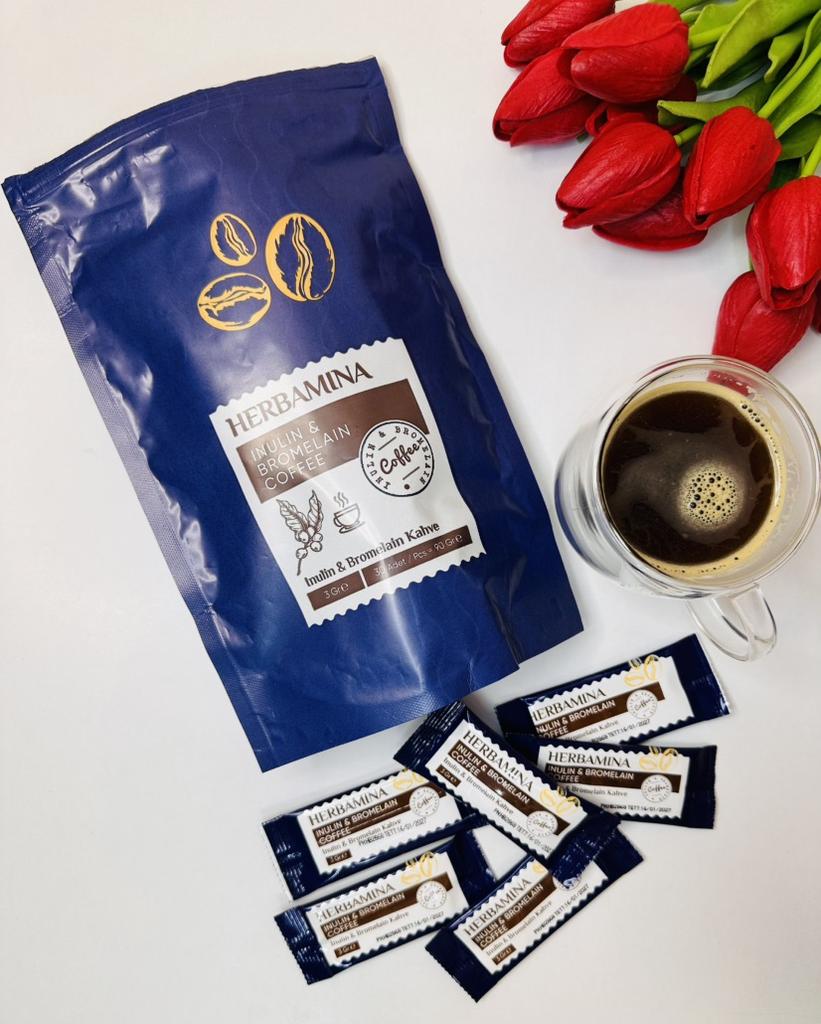 Кофе диетический,содержащийся в нем инулин, Турция. Он помогает регулировать пищеварительную систему.Поскольку волокнистая пища медленно переваривается в желудке, она обеспечивает чувство сытости в течение более длительного времени. Фермент бромелайн помогает быстрее переваривать белки. КОФЕ ИНУЛИН И БРОМЕЛАЙН представлен в практичной форме, которую можно легко интегрировать в вашу повседневную жизнь. Каждая упаковка обогащена 3 граммами инулина и бромелаина и идеально подходит для удовлетворения ваших ежедневных потребностей. Как использовать: Всю смесь вылейте в чашку.Добавьте горячую воду. Содержание: Кофеин 55мг, Инулин 33%, Бромелайн - 3,3%. Инулин это растворимая пищевая клетчатка, оказывающая положительное влияние на микробиом кишечника.Считается, что он помогает регулировать жировой обмен и уровень сахара в крови, а также облегчает запоры и депрессию. Растения естественным образом производят инулин и используют его в качестве источника энергии. Он содержится в 36 000 различных видах растений. Он считается пребиотиком и часто добавляется во все больше и больше пищевых продуктов из-за его преимуществ и адаптируемости. Благодаря своей кремовой консистенции инулин может служить заменителем жира в маргарине и заправках для салатов. Преимущества инулина: Инулин отличается высоким содержанием клетчатки и низким содержанием калорий. Инулин также увеличивает объем стула и увеличивает частоту стула.У вас может быть больше дефекаций, но инулин замедляет общее пищеварение.. Это позволяет вашему организму лучше усваивать питательные вещества из пищи, которую вы едите. Исследования показывают, что инулин также может помочь организму лучше усваивать кальций.Кальций укрепляет скелетную систему. Он контролирует уровень сахара в крови Инулин замедляет пищеварение, в том числе переваривание углеводов. Это позволяет сахару высвобождаться медленно, без резких скачков, что способствует здоровому уровню сахара в крови. Исследование 2019 года показало, что добавки инулина могут улучшить резистентность к инсулину у людей с диабетом 2 типа и ожирением. Он может действовать как потенциальный стабилизатор уровня сахара в крови, если присутствует в вашем рационе в течение длительного периода времени.
