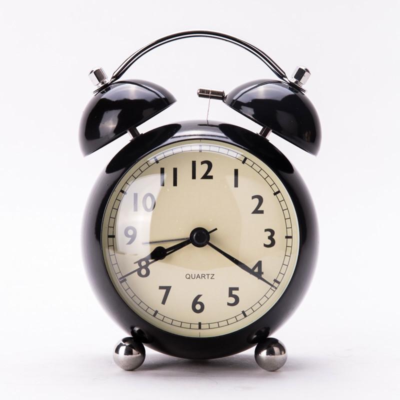 Металлический тихий нетикающий будильник на прикроватной тумбочке, винтажные настольные часы с двумя колокольчиками и подсветкой для крепко спящих людей и детей