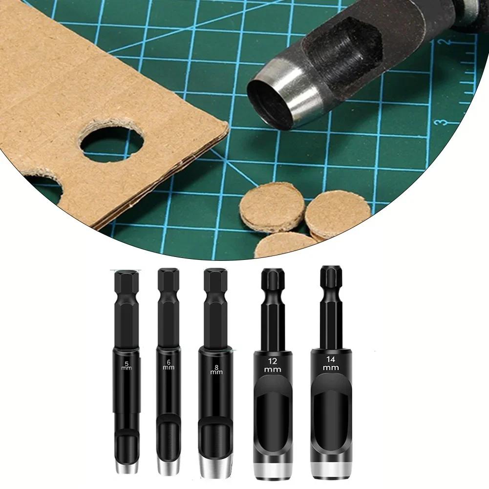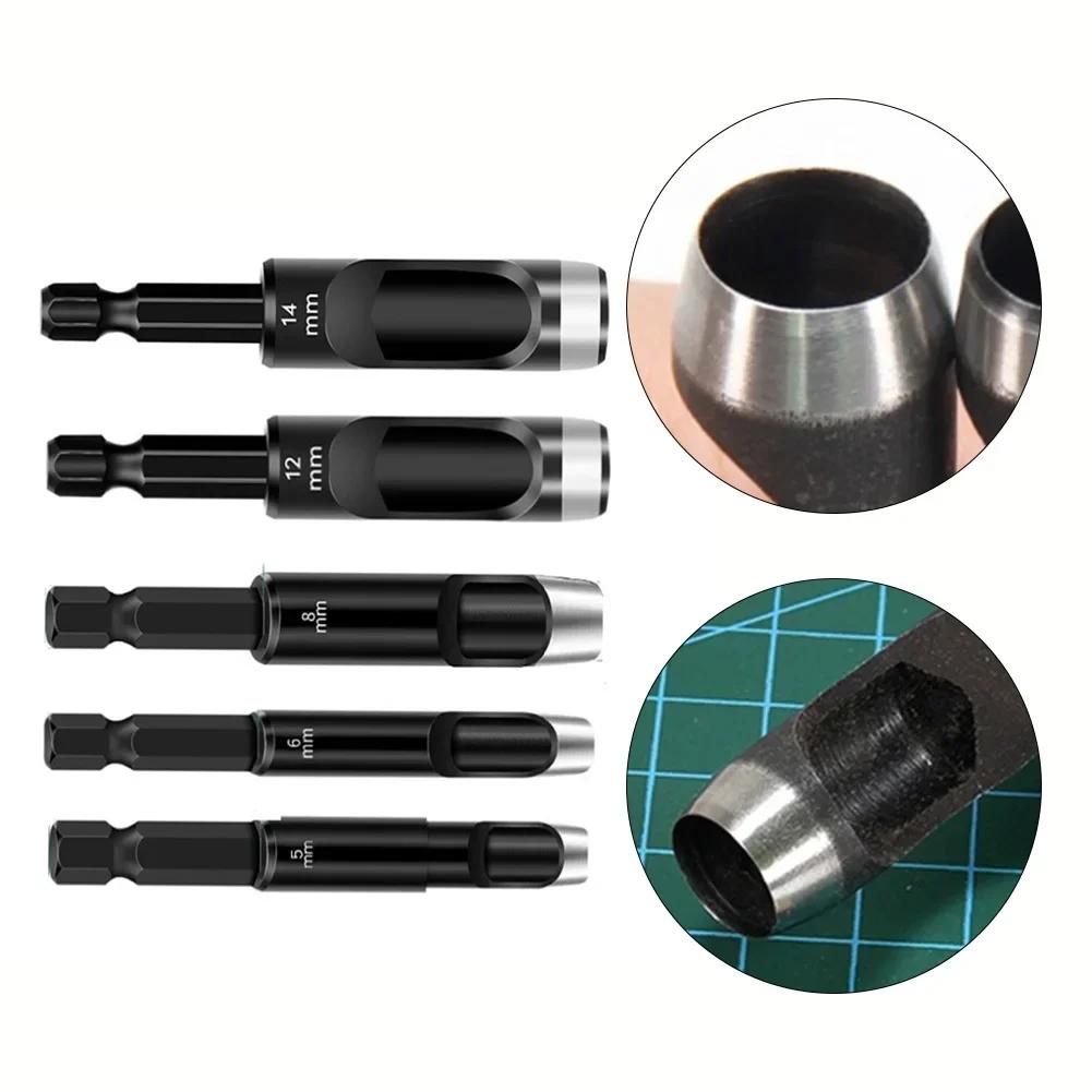 5 шт. Дырокол для кожи, полый дырокол с шестигранным хвостовиком, инструмент для пробивки отверстий 5/6/8/12/14 мм, самодельный дырокол для часов и ремня, ручной дырокол