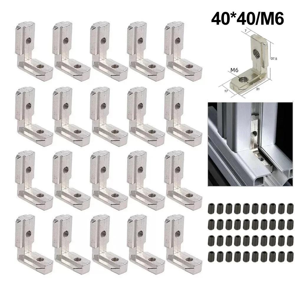 20 шт. Т-образных угловых кронштейнов с 40 шт. винтов для алюминиевого профиля, серебристый L-образный угловой соединитель, внутренний соединительный кронштейн