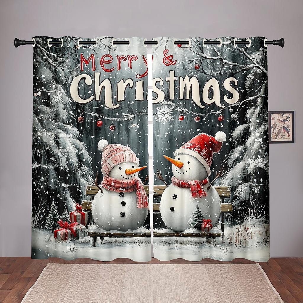 Рождественские шторы со снеговиком Winter Wonderland 2 панели 3D цифровая печать праздничный декор спальня гостиная уютный романтический снегопад