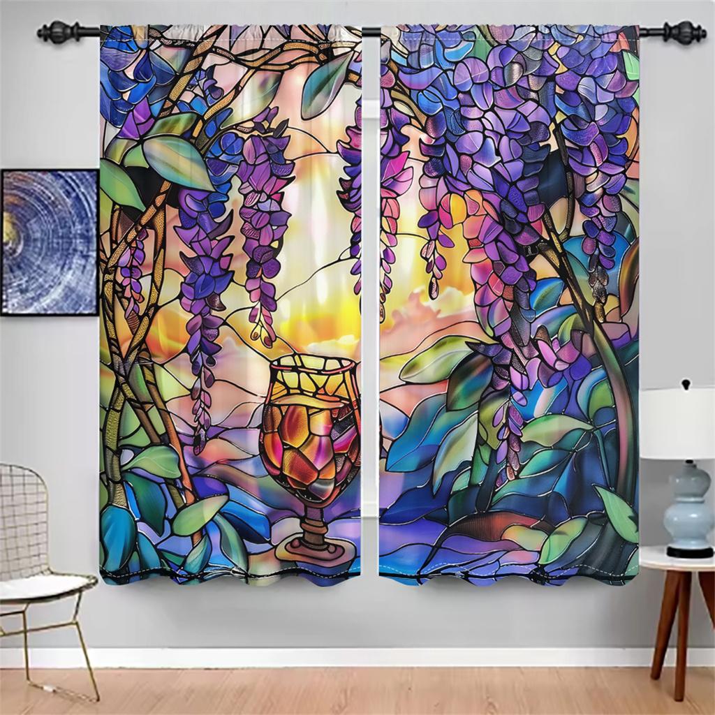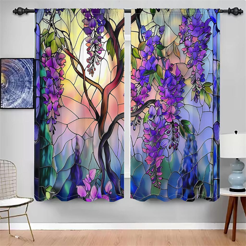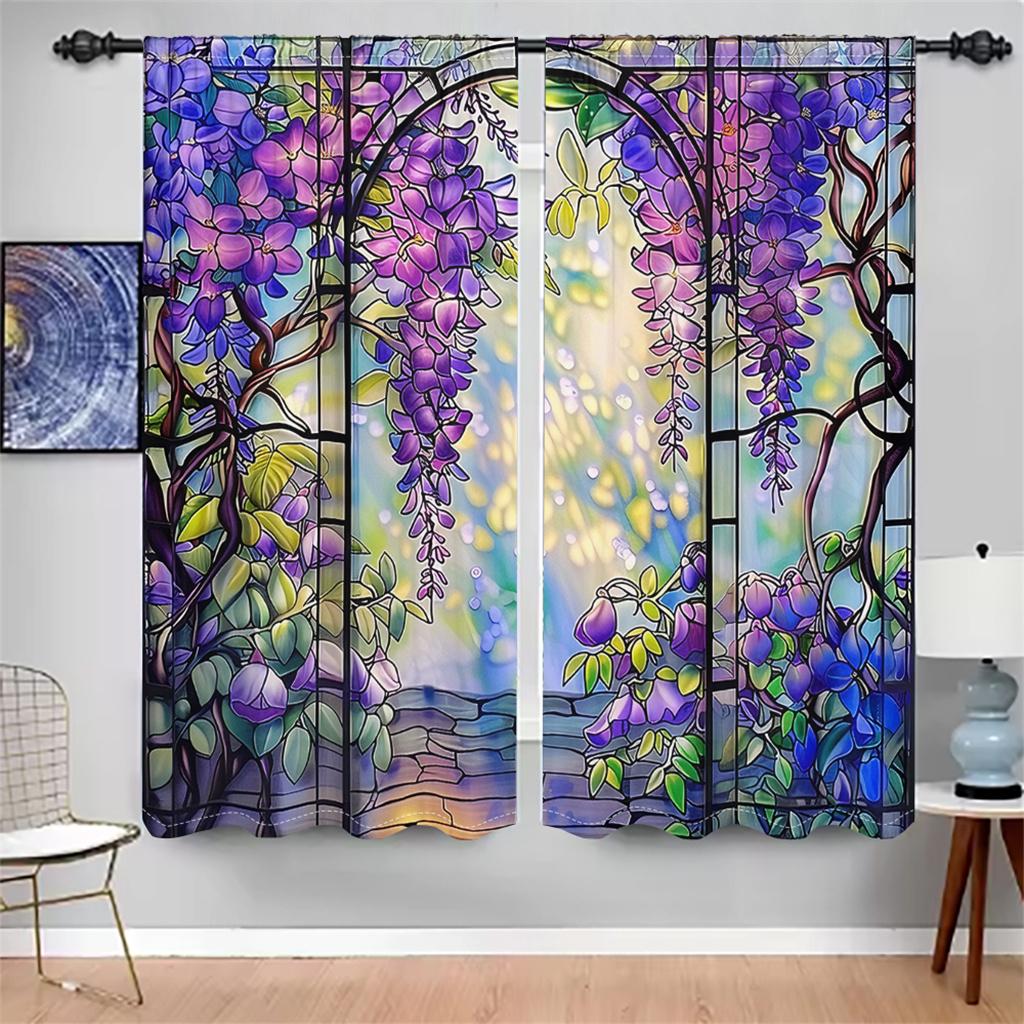 Витражные шторы с глицинией, цветочные садовые шторы на окна, 2 панели, романтическая гостиная, спальня, домашний декор