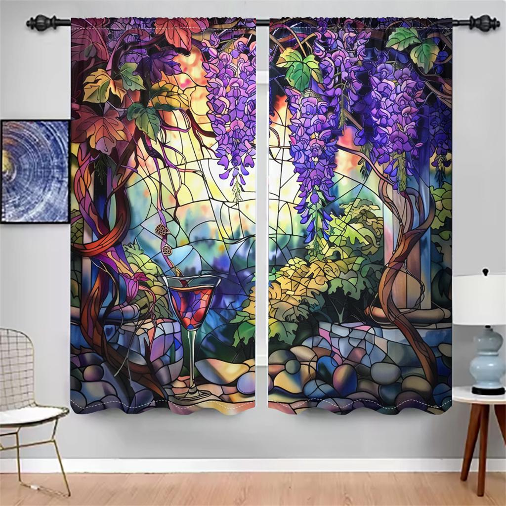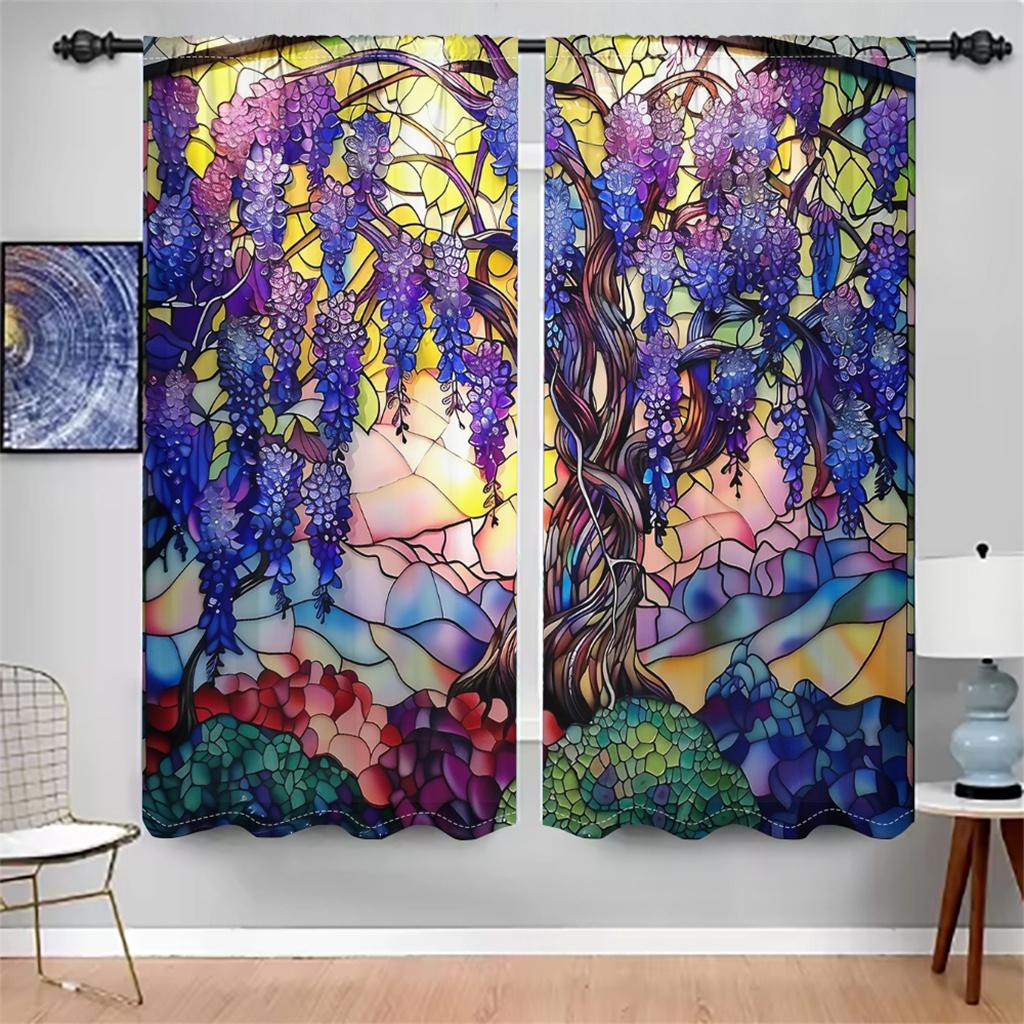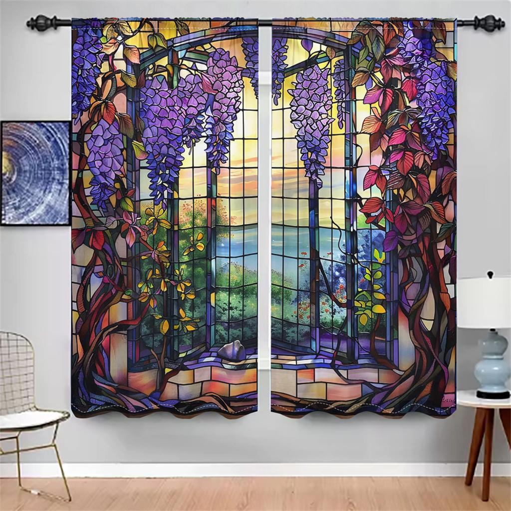Витражные шторы с глицинией, цветочные садовые шторы на окна, 2 панели, романтическая гостиная, спальня, домашний декор