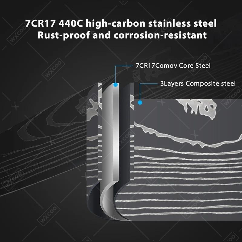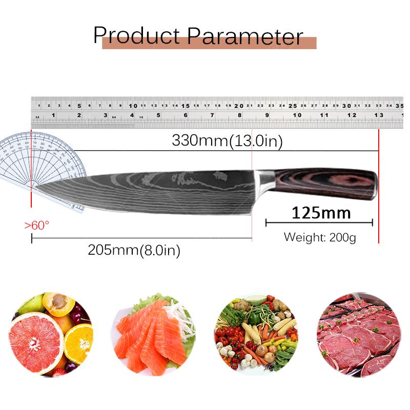 Kitchen Chef Knife Stainless Filleting Knives Santoku Meat Cleaver Knife with Laser Damascus Pattern Household Cooking Tools
