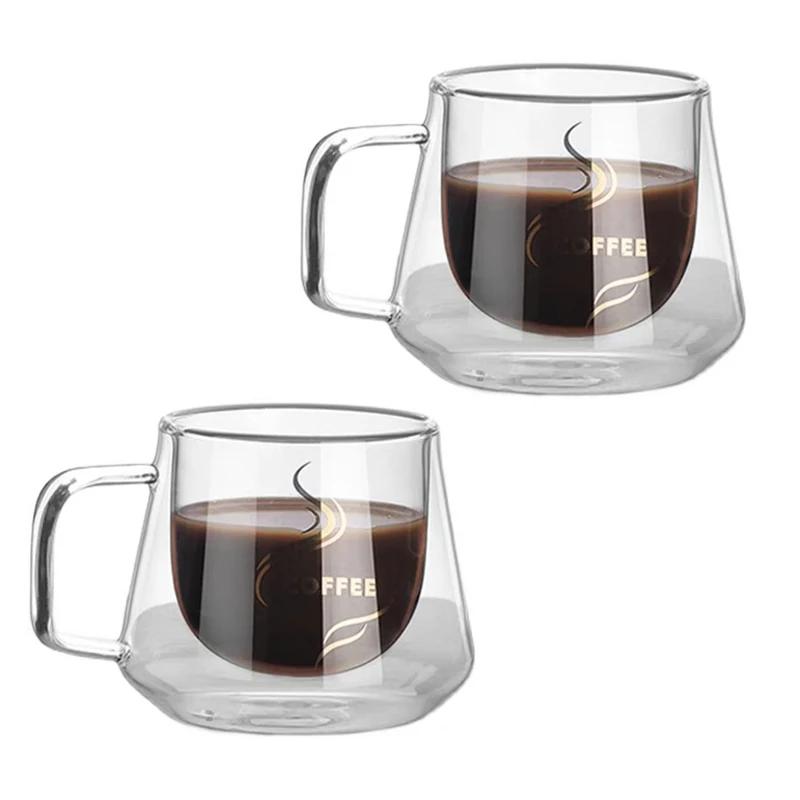 200 мл двухслойная стеклянная чашка с ручкой термостойкая прозрачная кофейная чашка капучино латте чай вода пивные чашки посуда для напитков