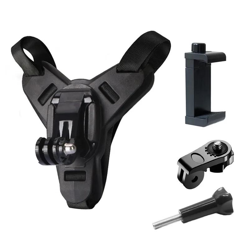 Крепление на подбородок мотоциклетного шлема на 360 градусов с зажимом для телефона, совместимое со смартфонами iPhone, Samsung, LG, Pixel, Xiaomi