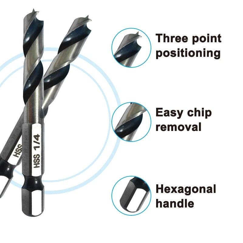 Набор инструментов для сверл по дереву из быстрорежущей стали с шестигранным хвостовиком, тремя режущими кромками и двумя канавками, интегрированная британская система