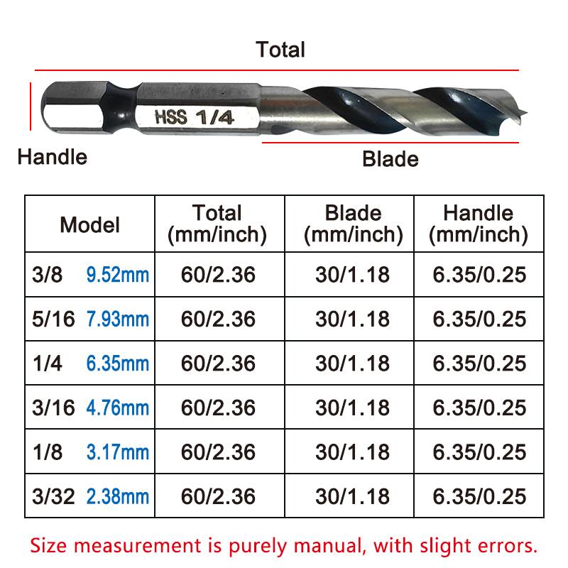 Набор инструментов для сверл по дереву из быстрорежущей стали с шестигранным хвостовиком, тремя режущими кромками и двумя канавками, интегрированная британская система