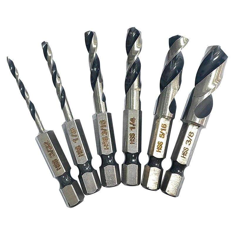 6 шт. быстрорежущая сталь шестигранный хвостовик интегрированное спиральное сверло британской системы деревообрабатывающее сверло двухгранный и двухпазовый инструмент для сверления