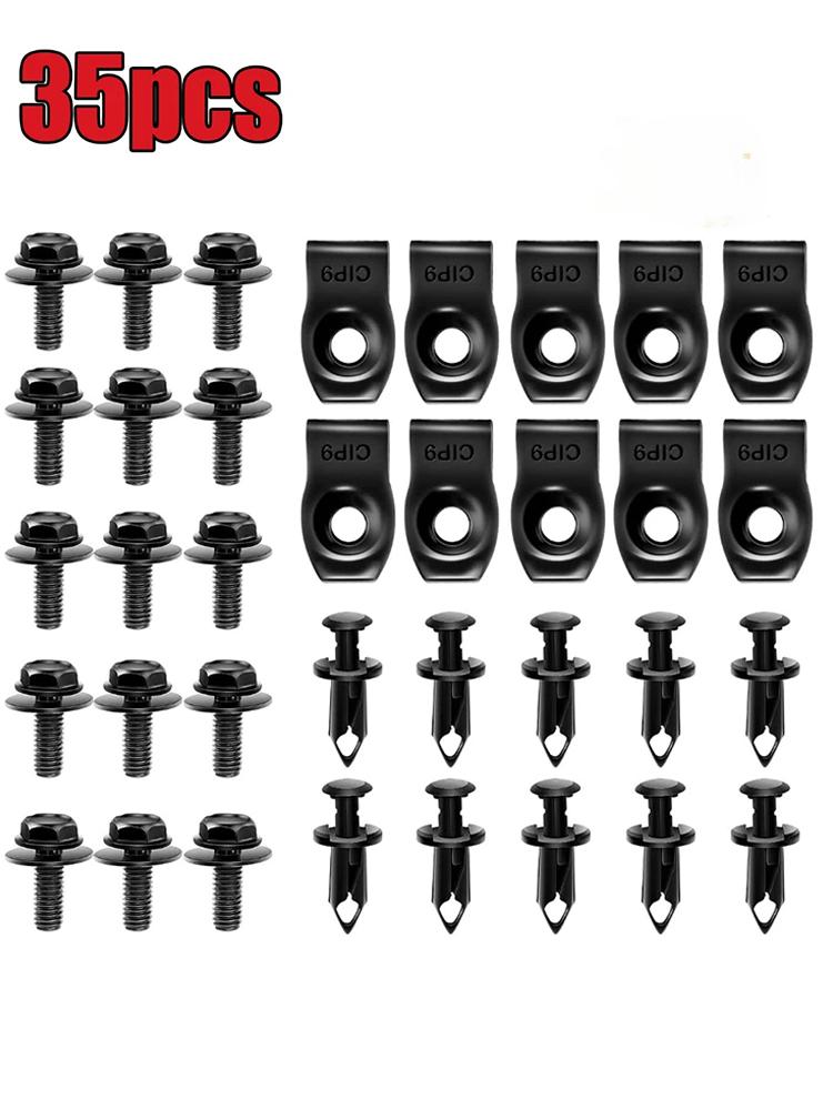 35 шт. болтов для кузова автомобиля и зажимов U-образных гаек, крышка двигателя, поддон, брызговик, бампер, фиксатор крыла, крепеж, заклепочные винты