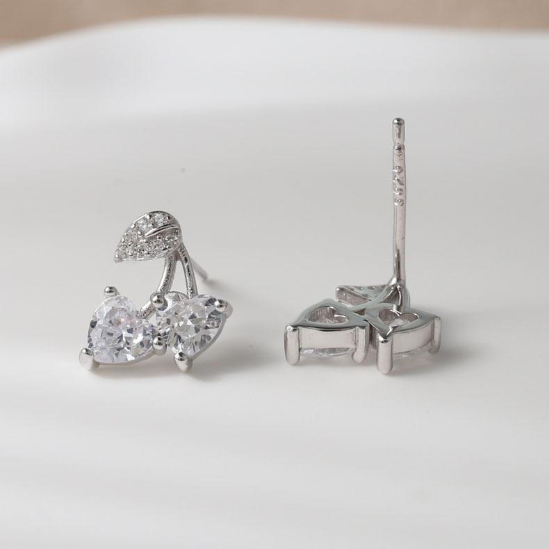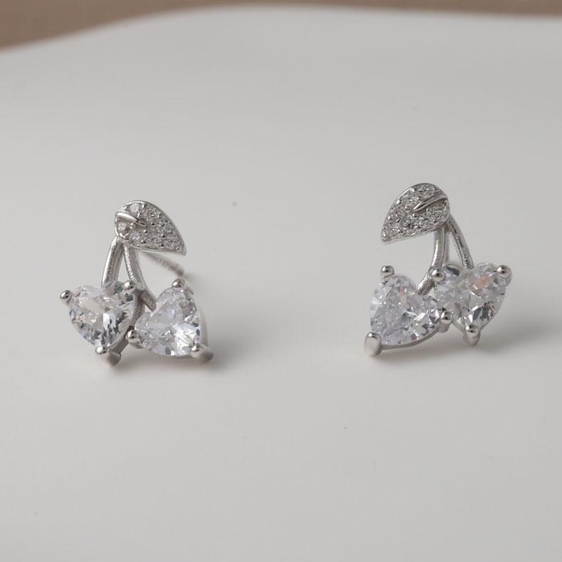 Ins Sweet Zircon Love Cherry Серьги Изысканные серьги в форме сердца для девочек