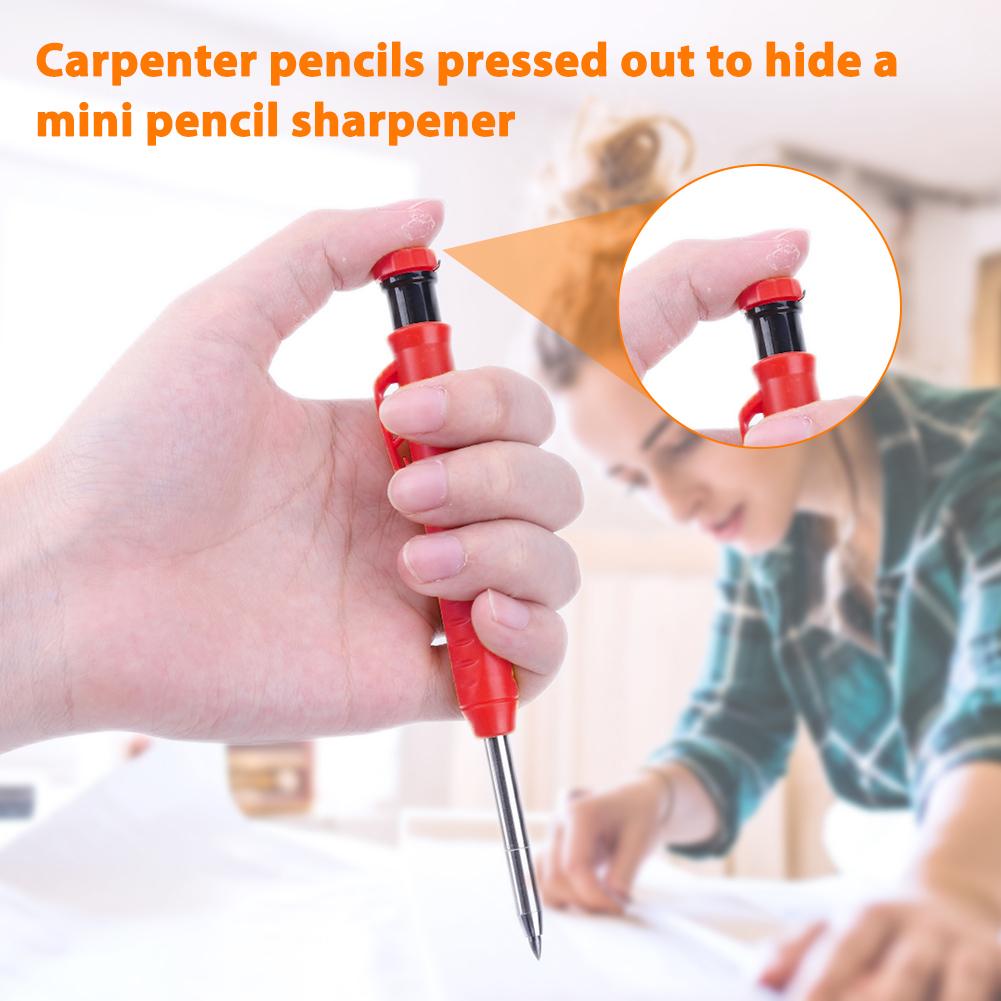 Solid Carpenter Pencil Set with 6 Refill Lead Deep Hole Marking Pencil Built-in Sharpener Ergonomic for Woodworking Architect — купить товар онлайн с бесплатной доставкой по всему миру!