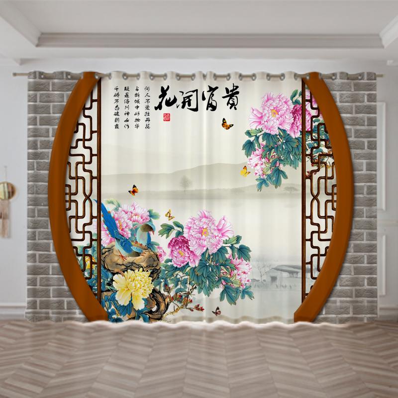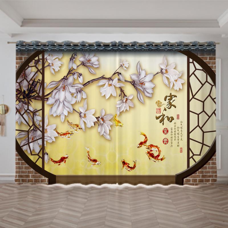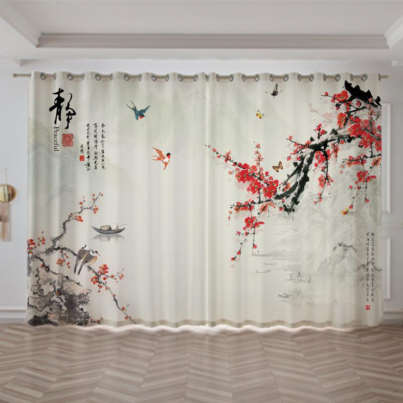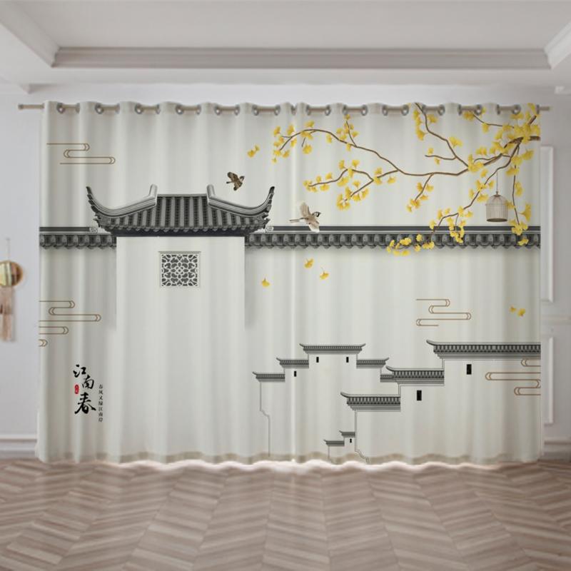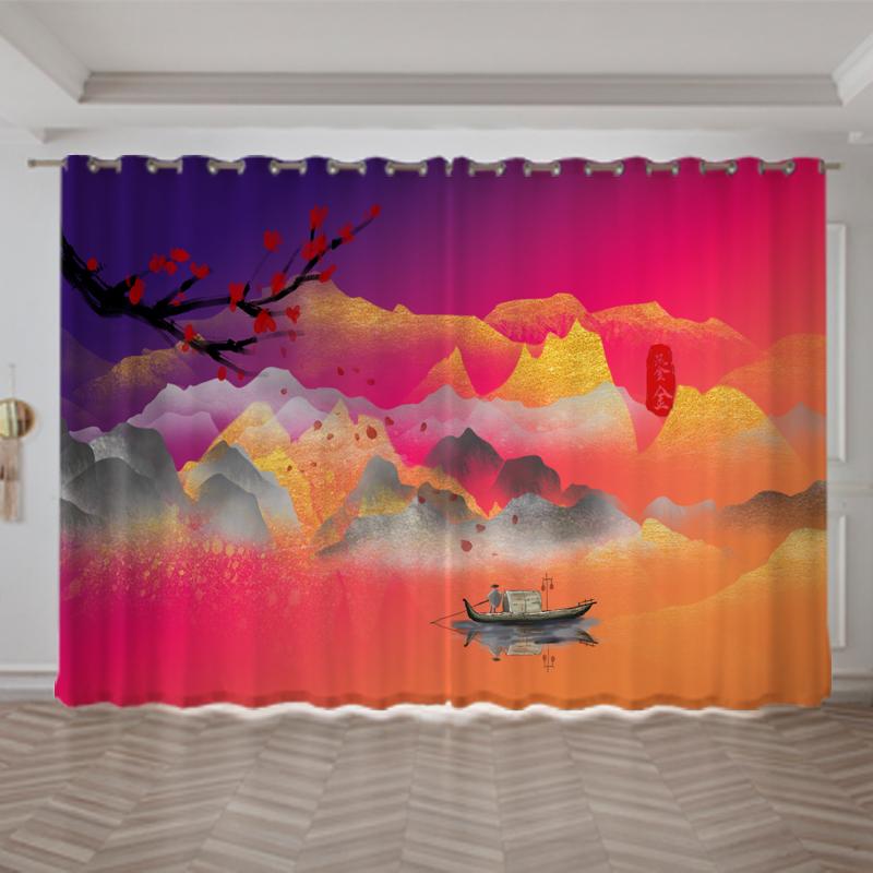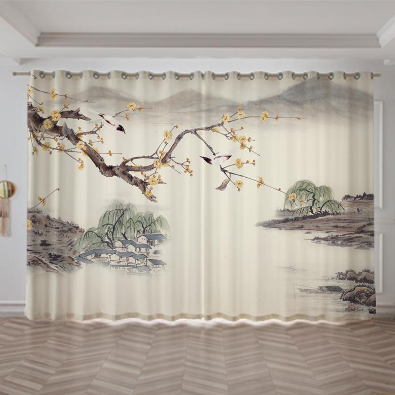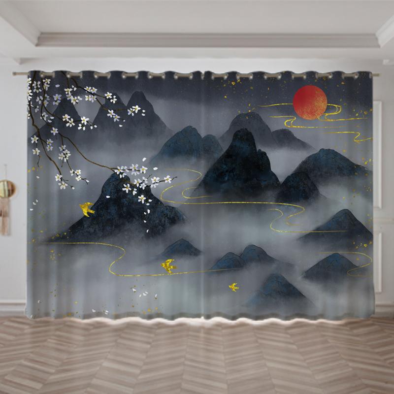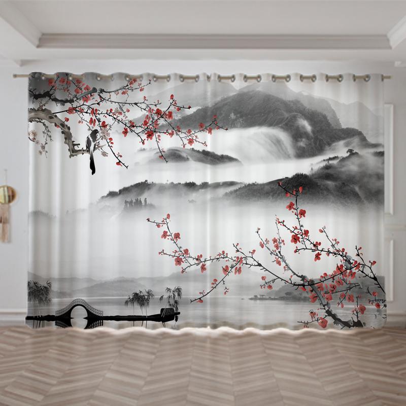 Новая китайская речная горная картина пейзаж занавес для спальни гостиной напольные окна шторы жалюзи драпировка 2 панели