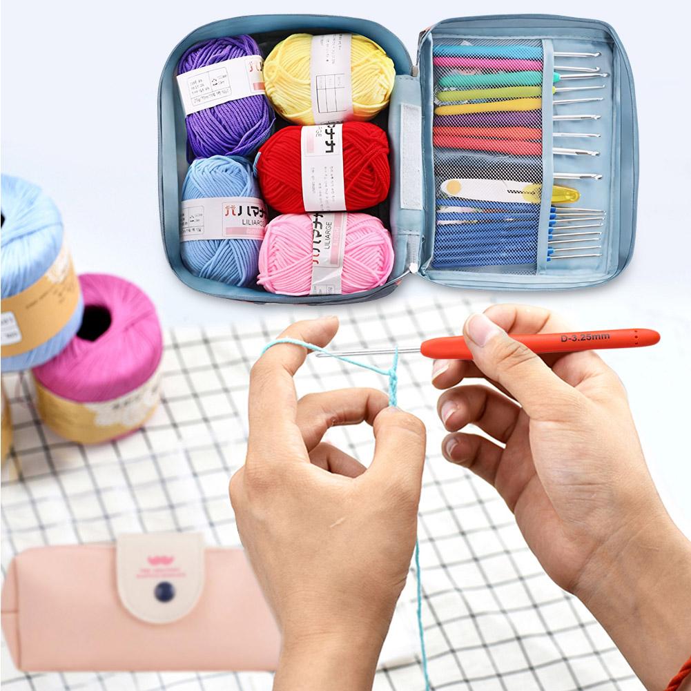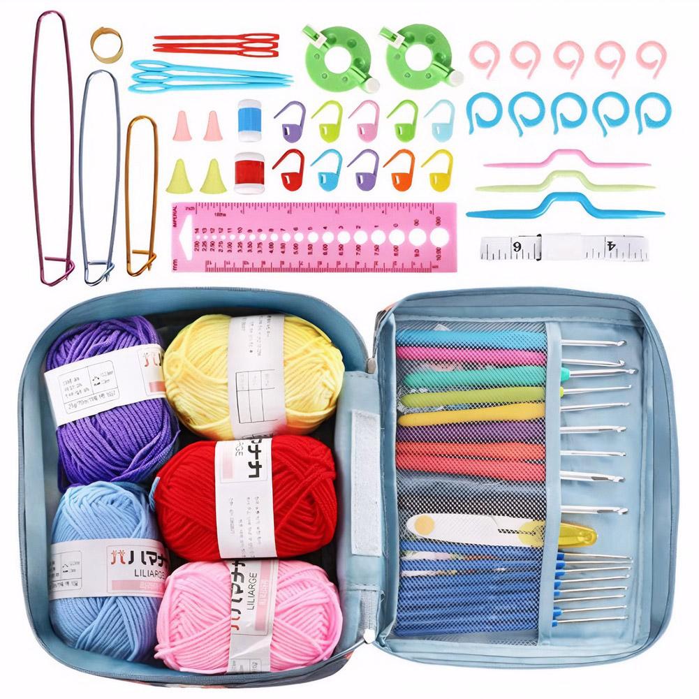 Набор из 67 крючков для вязания с чехлом, набор для начинающих, разноцветные спицы для вязания, набор для пряжи с эргономичной ручкой для начинающих