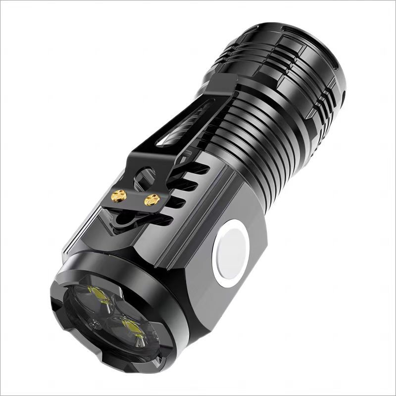 Маленький стальной фонарик с тремя глазами, перезаряжаемый, сверхъяркий, портативный, дальнего действия, мощный фонарик для наружного освещения